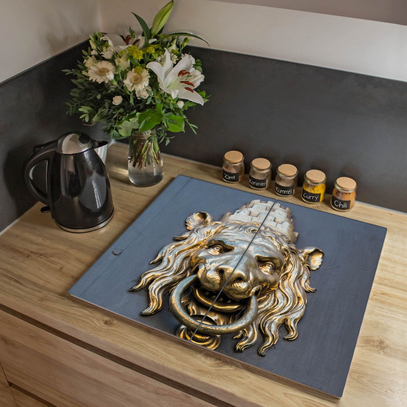 Herdabdeckplatte 1, 2 und 3 teilig Motiv Türklopfer Löwe