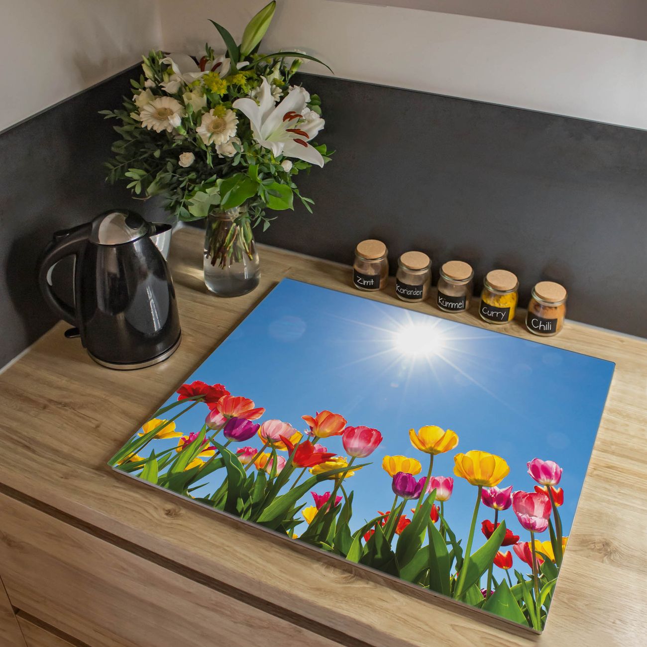 VIELSEITIG: Die Ceranfeldabdeckung ist vielseitig einsetzbar: ob als Spritzschutz hinter dem Herd für Ihre Küche oder als Glas Schneidebrett als hygienische und geruchsneutrale Unterlage. Sie können ebenfalls heiße Töpfe und Pfannen bis 100°C auf der Herdplattenabdeckung abstellen. Sie erhalten ein Multitalent für Ihre Küche. Die banjado Herdabdeckplatte aus Glas mit Motiv Tulpenmeer verdeckt mit einem schönen Motiv Ihr Ceranfeld bzw. Ihren Induktionsherd. Die Herdabdeckplatte ist vielseitig einsetzbar und passt sich dabei Ihrem Einrichtungsstil an. DESIGN: Die Herdabdeckung Tulpenmeer besteht aus hochwertigem, gehärtetem Glas mit einem unserer zahlreichen Motive. Sie haben die Wahl zwischen verschiedenen Maßen von einteiligen, zweiteiligen und einer dreiteiligen Herdabdeckung. Wählen Sie was zu Ihrer Einrichtung passt! DETAILS: Die Herdabdeckplatte ist vielseitig einsetzbar. Die Ecken sind für mehr Sicherheit dezent abgerundet, das Glas ist gehärtet. Sie erhalten separate Gummi Abstandshalter, damit Ihre Abdeckung rutschfest auf dem Herd steht. Diese können Sie frei positionieren, sodass die Herdabdeckung perfekt auf Ihrem Ceranfeld sitzt. BANJADO: Wir sind ein kleines Team aus dem Herzen von Sachsen und fertigen jeden Artikel nach Bestellung eigens für Sie an. Sie erhalten also keine preiswerte Importware, sondern Handarbeit. Auf Wunsch sind auch andere Farben und Größen möglich, kontakierten Sie uns gern.