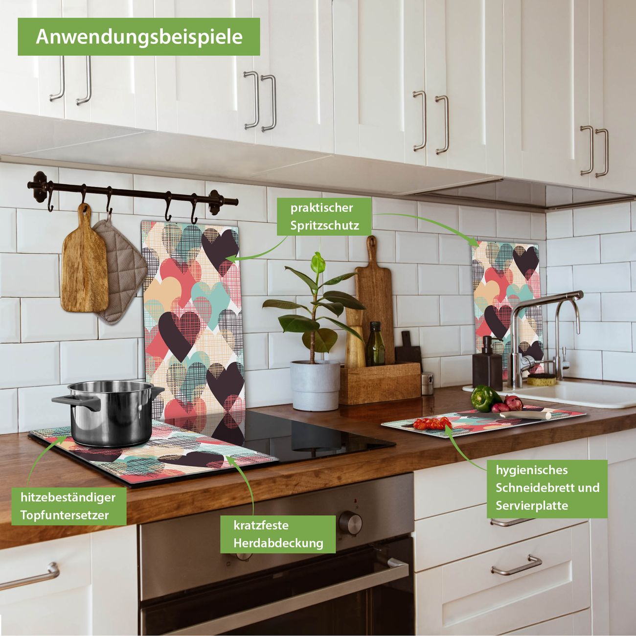Herdabdeckplatte 1, 2 und 3 teilig Motiv Unter Herzen