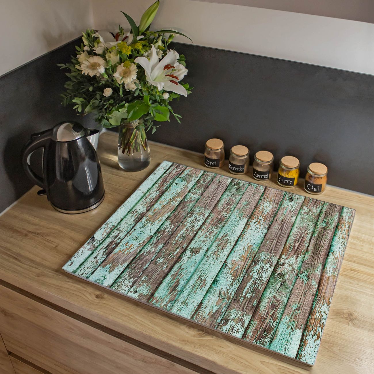 VIELSEITIG: Die Ceranfeldabdeckung ist vielseitig einsetzbar: ob als Spritzschutz hinter dem Herd für Ihre Küche oder als Glas Schneidebrett als hygienische und geruchsneutrale Unterlage. Sie können ebenfalls heiße Töpfe und Pfannen bis 100°C auf der Herdplattenabdeckung abstellen. Sie erhalten ein Multitalent für Ihre Küche. Die banjado Herdabdeckplatte aus Glas mit Motiv Verwittertes Holz verdeckt mit einem schönen Motiv Ihr Ceranfeld bzw. Ihren Induktionsherd. Die Herdabdeckplatte ist vielseitig einsetzbar und passt sich dabei Ihrem Einrichtungsstil an. DESIGN: Die Herdabdeckung Verwittertes Holz besteht aus hochwertigem, gehärtetem Glas mit einem unserer zahlreichen Motive. Sie haben die Wahl zwischen verschiedenen Maßen von einteiligen, zweiteiligen und einer dreiteiligen Herdabdeckung. Wählen Sie was zu Ihrer Einrichtung passt! DETAILS: Die Herdabdeckplatte ist vielseitig einsetzbar. Die Ecken sind für mehr Sicherheit dezent abgerundet, das Glas ist gehärtet. Sie erhalten separate Gummi Abstandshalter, damit Ihre Abdeckung rutschfest auf dem Herd steht. Diese können Sie frei positionieren, sodass die Herdabdeckung perfekt auf Ihrem Ceranfeld sitzt. BANJADO: Wir sind ein kleines Team aus dem Herzen von Sachsen und fertigen jeden Artikel nach Bestellung eigens für Sie an. Sie erhalten also keine preiswerte Importware, sondern Handarbeit. Auf Wunsch sind auch andere Farben und Größen möglich, kontakierten Sie uns gern.