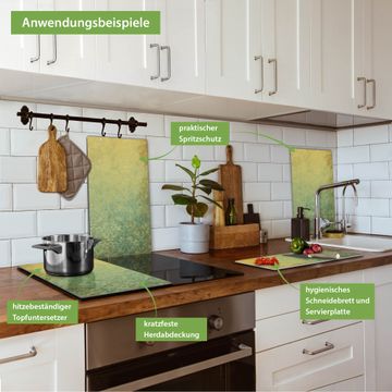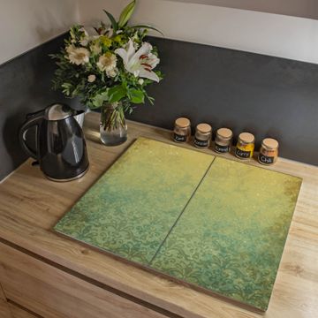 VIELSEITIG: Die Ceranfeldabdeckung ist vielseitig einsetzbar: ob als Spritzschutz hinter dem Herd für Ihre Küche oder als Glas Schneidebrett als hygienische und geruchsneutrale Unterlage. Sie können ebenfalls heiße Töpfe und Pfannen bis 100°C auf der Herdplattenabdeckung abstellen. Sie erhalten ein Multitalent für Ihre Küche. Die banjado Herdabdeckplatte aus Glas mit Motiv Vintage Messing verdeckt mit einem schönen Motiv Ihr Ceranfeld bzw. Ihren Induktionsherd. Die Herdabdeckplatte ist vielseitig einsetzbar und passt sich dabei Ihrem Einrichtungsstil an. DESIGN: Die Herdabdeckung Vintage Messing besteht aus hochwertigem, gehärtetem Glas mit einem unserer zahlreichen Motive. Sie haben die Wahl zwischen verschiedenen Maßen von einteiligen, zweiteiligen und einer dreiteiligen Herdabdeckung. Wählen Sie was zu Ihrer Einrichtung passt! DETAILS: Die Herdabdeckplatte ist vielseitig einsetzbar. Die Ecken sind für mehr Sicherheit dezent abgerundet, das Glas ist gehärtet. Sie erhalten separate Gummi Abstandshalter, damit Ihre Abdeckung rutschfest auf dem Herd steht. Diese können Sie frei positionieren, sodass die Herdabdeckung perfekt auf Ihrem Ceranfeld sitzt. BANJADO: Wir sind ein kleines Team aus dem Herzen von Sachsen und fertigen jeden Artikel nach Bestellung eigens für Sie an. Sie erhalten also keine preiswerte Importware, sondern Handarbeit. Auf Wunsch sind auch andere Farben und Größen möglich, kontakierten Sie uns gern.