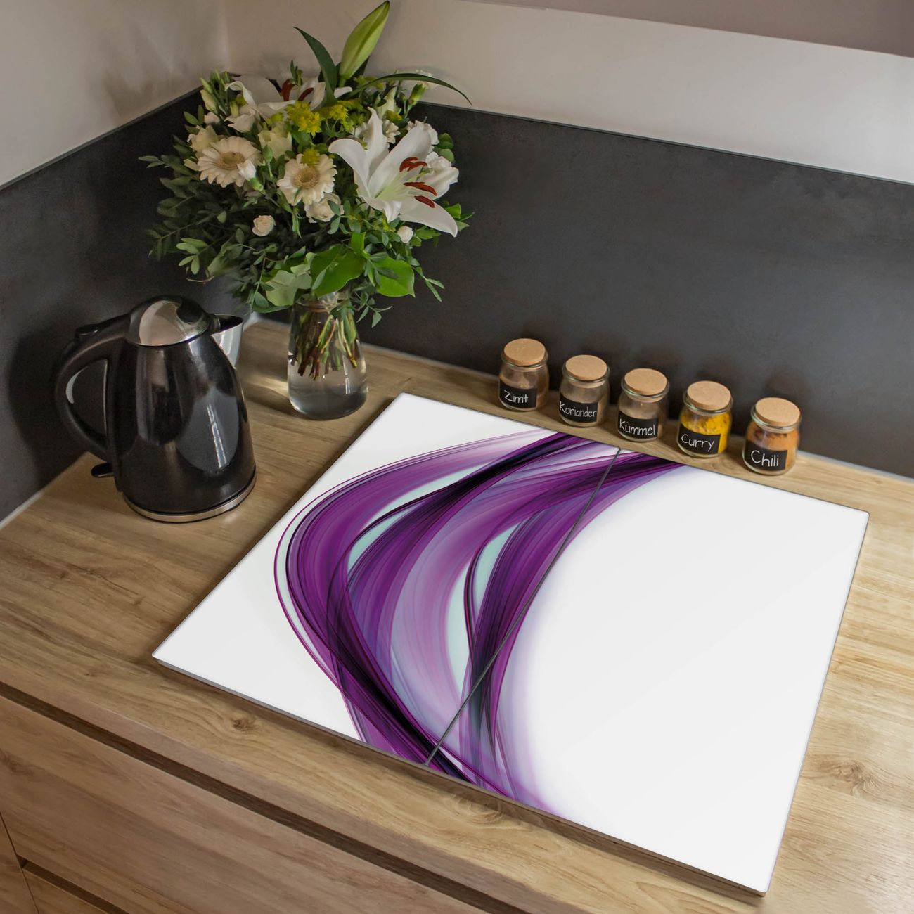 Herdabdeckplatte 1, 2 und 3 teilig Motiv Violet Element