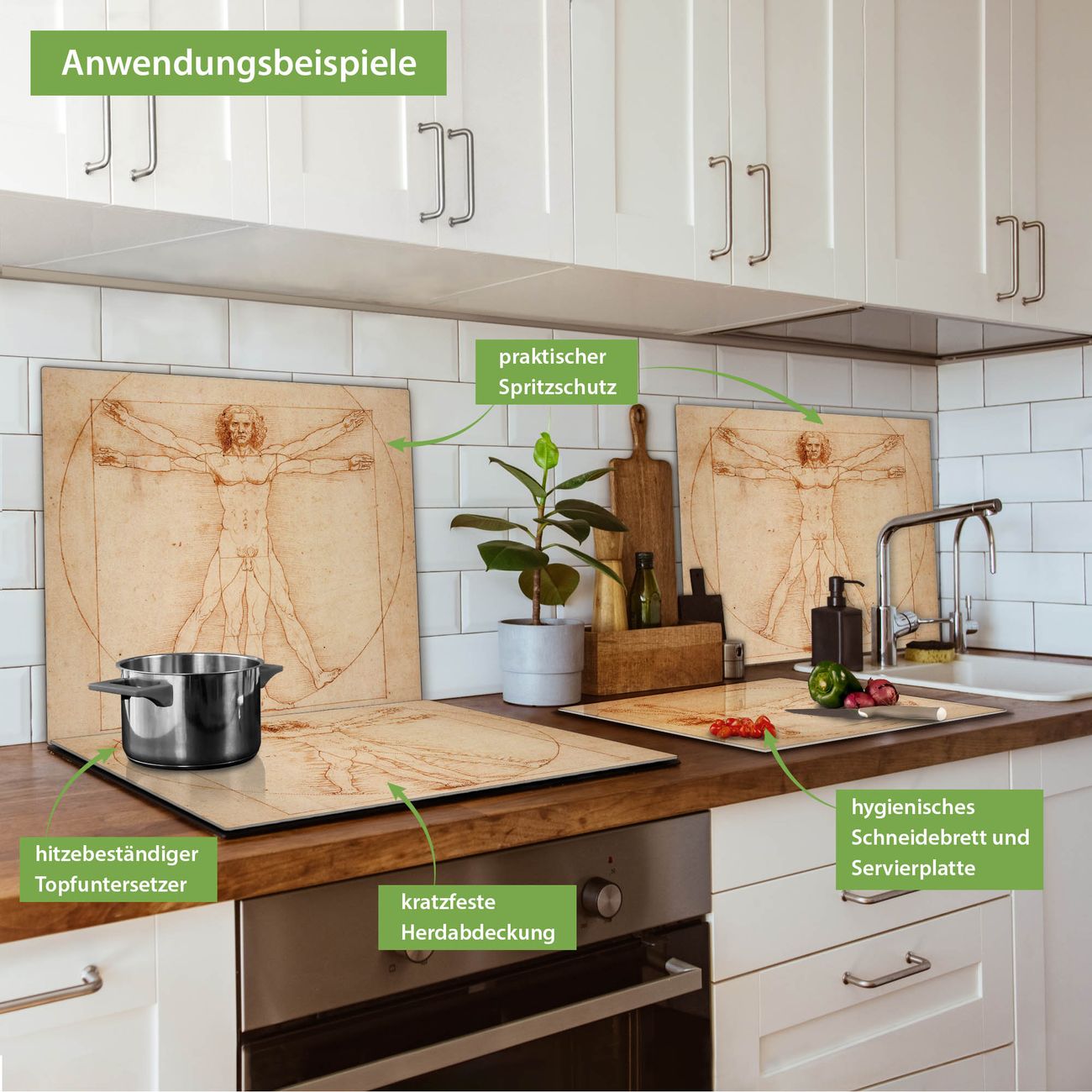 Herdabdeckplatte 1, 2 und 3 teilig Motiv Vitruvianische Figur
