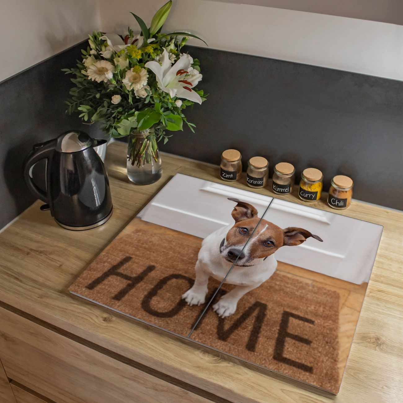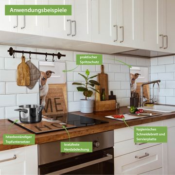 VIELSEITIG: Die Ceranfeldabdeckung ist vielseitig einsetzbar: ob als Spritzschutz hinter dem Herd für Ihre Küche oder als Glas Schneidebrett als hygienische und geruchsneutrale Unterlage. Sie können ebenfalls heiße Töpfe und Pfannen bis 100°C auf der Herdplattenabdeckung abstellen. Sie erhalten ein Multitalent für Ihre Küche. Die banjado Herdabdeckplatte aus Glas mit Motiv Wachhund Jack Russel verdeckt mit einem schönen Motiv Ihr Ceranfeld bzw. Ihren Induktionsherd. Die Herdabdeckplatte ist vielseitig einsetzbar und passt sich dabei Ihrem Einrichtungsstil an. DESIGN: Die Herdabdeckung Wachhund Jack Russel besteht aus hochwertigem, gehärtetem Glas mit einem unserer zahlreichen Motive. Sie haben die Wahl zwischen verschiedenen Maßen von einteiligen, zweiteiligen und einer dreiteiligen Herdabdeckung. Wählen Sie was zu Ihrer Einrichtung passt! DETAILS: Die Herdabdeckplatte ist vielseitig einsetzbar. Die Ecken sind für mehr Sicherheit dezent abgerundet, das Glas ist gehärtet. Sie erhalten separate Gummi Abstandshalter, damit Ihre Abdeckung rutschfest auf dem Herd steht. Diese können Sie frei positionieren, sodass die Herdabdeckung perfekt auf Ihrem Ceranfeld sitzt. BANJADO: Wir sind ein kleines Team aus dem Herzen von Sachsen und fertigen jeden Artikel nach Bestellung eigens für Sie an. Sie erhalten also keine preiswerte Importware, sondern Handarbeit. Auf Wunsch sind auch andere Farben und Größen möglich, kontakierten Sie uns gern.