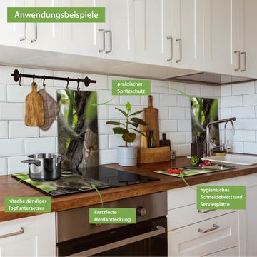 VIELSEITIG: Die Ceranfeldabdeckung ist vielseitig einsetzbar: ob als Spritzschutz hinter dem Herd für Ihre Küche oder als Glas Schneidebrett als hygienische und geruchsneutrale Unterlage. Sie können ebenfalls heiße Töpfe und Pfannen bis 100°C auf der Herdplattenabdeckung abstellen. Sie erhalten ein Multitalent für Ihre Küche. Die banjado Herdabdeckplatte aus Glas mit Motiv Waschbär verdeckt mit einem schönen Motiv Ihr Ceranfeld bzw. Ihren Induktionsherd. Die Herdabdeckplatte ist vielseitig einsetzbar und passt sich dabei Ihrem Einrichtungsstil an. DESIGN: Die Herdabdeckung Waschbär besteht aus hochwertigem, gehärtetem Glas mit einem unserer zahlreichen Motive. Sie haben die Wahl zwischen verschiedenen Maßen von einteiligen, zweiteiligen und einer dreiteiligen Herdabdeckung. Wählen Sie was zu Ihrer Einrichtung passt! DETAILS: Die Herdabdeckplatte ist vielseitig einsetzbar. Die Ecken sind für mehr Sicherheit dezent abgerundet, das Glas ist gehärtet. Sie erhalten separate Gummi Abstandshalter, damit Ihre Abdeckung rutschfest auf dem Herd steht. Diese können Sie frei positionieren, sodass die Herdabdeckung perfekt auf Ihrem Ceranfeld sitzt. BANJADO: Wir sind ein kleines Team aus dem Herzen von Sachsen und fertigen jeden Artikel nach Bestellung eigens für Sie an. Sie erhalten also keine preiswerte Importware, sondern Handarbeit. Auf Wunsch sind auch andere Farben und Größen möglich, kontakierten Sie uns gern.