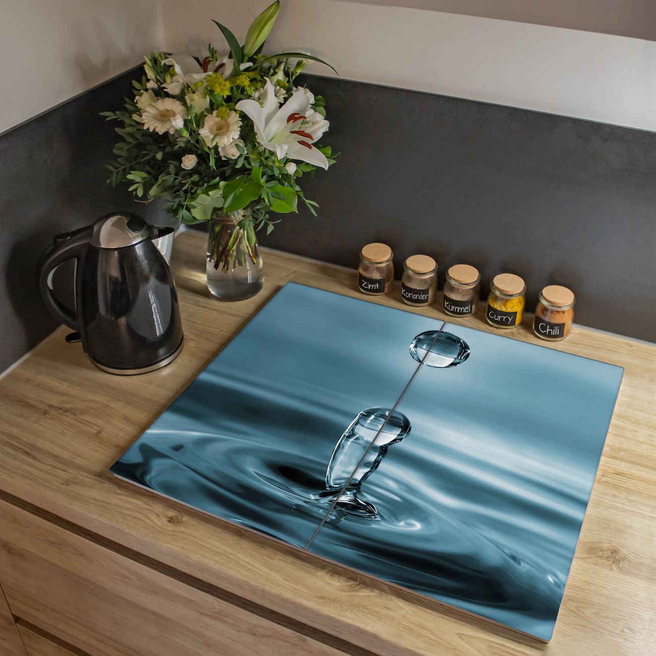 Herdabdeckplatte 1, 2 und 3 teilig Motiv Wassertropfen