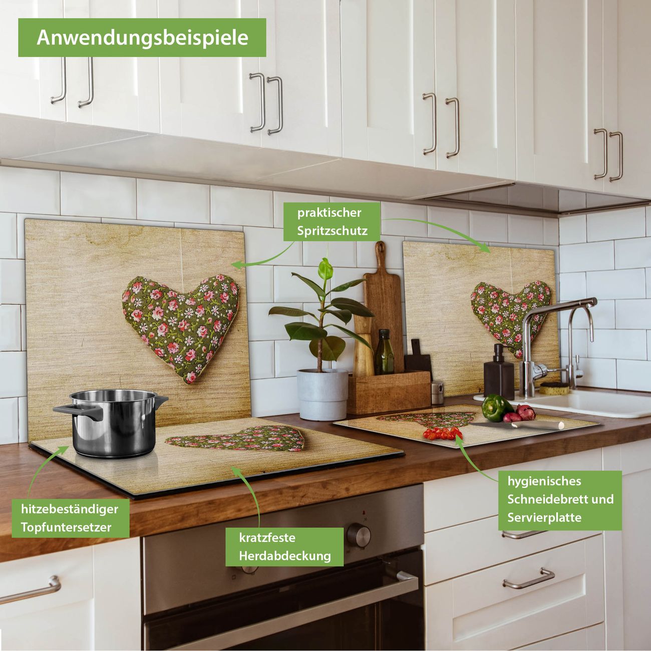 Herdabdeckplatte 1, 2 und 3 teilig Motiv Weiches Herz