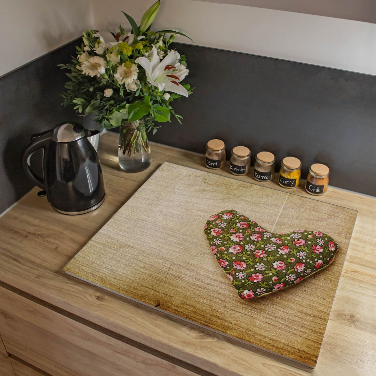 VIELSEITIG: Die Ceranfeldabdeckung ist vielseitig einsetzbar: ob als Spritzschutz hinter dem Herd für Ihre Küche oder als Glas Schneidebrett als hygienische und geruchsneutrale Unterlage. Sie können ebenfalls heiße Töpfe und Pfannen bis 100°C auf der Herdplattenabdeckung abstellen. Sie erhalten ein Multitalent für Ihre Küche. Die banjado Herdabdeckplatte aus Glas mit Motiv Weiches Herz verdeckt mit einem schönen Motiv Ihr Ceranfeld bzw. Ihren Induktionsherd. Die Herdabdeckplatte ist vielseitig einsetzbar und passt sich dabei Ihrem Einrichtungsstil an. DESIGN: Die Herdabdeckung Weiches Herz besteht aus hochwertigem, gehärtetem Glas mit einem unserer zahlreichen Motive. Sie haben die Wahl zwischen verschiedenen Maßen von einteiligen, zweiteiligen und einer dreiteiligen Herdabdeckung. Wählen Sie was zu Ihrer Einrichtung passt! DETAILS: Die Herdabdeckplatte ist vielseitig einsetzbar. Die Ecken sind für mehr Sicherheit dezent abgerundet, das Glas ist gehärtet. Sie erhalten separate Gummi Abstandshalter, damit Ihre Abdeckung rutschfest auf dem Herd steht. Diese können Sie frei positionieren, sodass die Herdabdeckung perfekt auf Ihrem Ceranfeld sitzt. BANJADO: Wir sind ein kleines Team aus dem Herzen von Sachsen und fertigen jeden Artikel nach Bestellung eigens für Sie an. Sie erhalten also keine preiswerte Importware, sondern Handarbeit. Auf Wunsch sind auch andere Farben und Größen möglich, kontakierten Sie uns gern.
