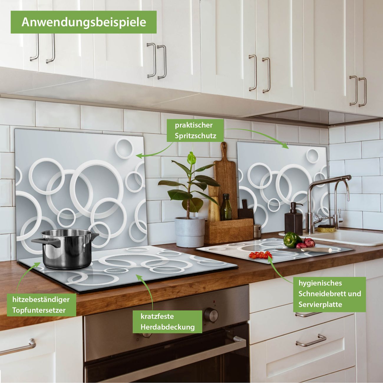 Herdabdeckplatte 1, 2 und 3 teilig Motiv Weiße Ringe