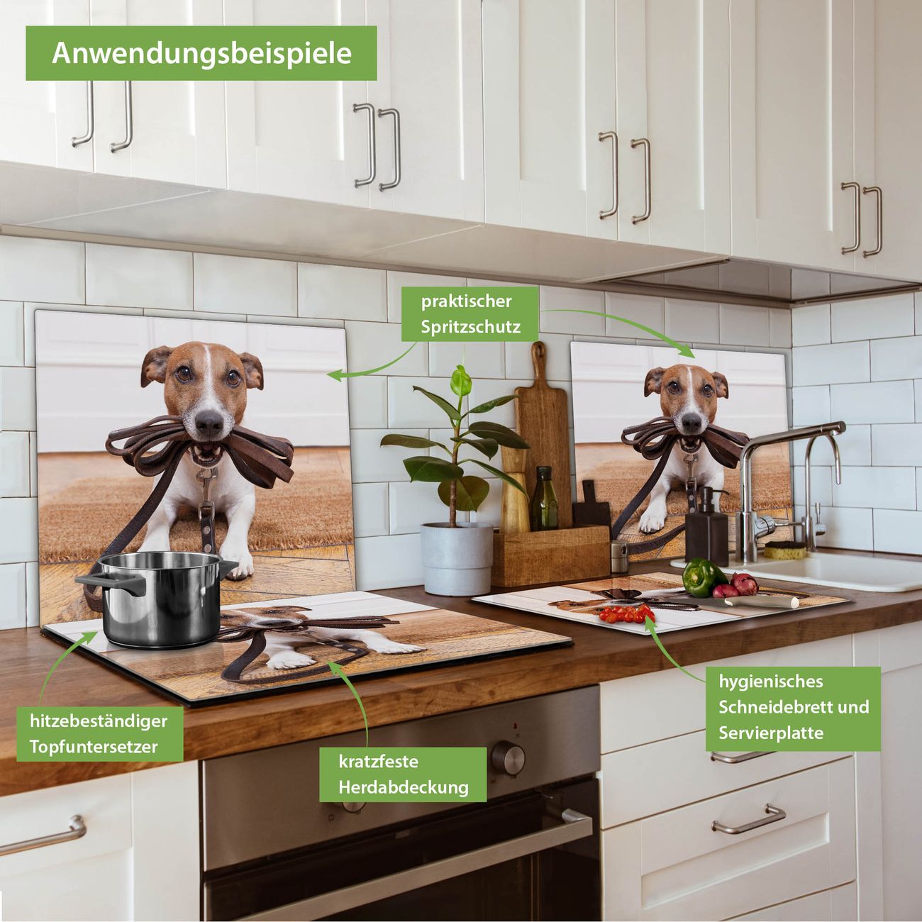 VIELSEITIG: Die Ceranfeldabdeckung ist vielseitig einsetzbar: ob als Spritzschutz hinter dem Herd für Ihre Küche oder als Glas Schneidebrett als hygienische und geruchsneutrale Unterlage. Sie können ebenfalls heiße Töpfe und Pfannen bis 100°C auf der Herdplattenabdeckung abstellen. Sie erhalten ein Multitalent für Ihre Küche. Die banjado Herdabdeckplatte aus Glas mit Motiv Wowka verdeckt mit einem schönen Motiv Ihr Ceranfeld bzw. Ihren Induktionsherd. Die Herdabdeckplatte ist vielseitig einsetzbar und passt sich dabei Ihrem Einrichtungsstil an. DESIGN: Die Herdabdeckung Wowka besteht aus hochwertigem, gehärtetem Glas mit einem unserer zahlreichen Motive. Sie haben die Wahl zwischen verschiedenen Maßen von einteiligen, zweiteiligen und einer dreiteiligen Herdabdeckung. Wählen Sie was zu Ihrer Einrichtung passt! DETAILS: Die Herdabdeckplatte ist vielseitig einsetzbar. Die Ecken sind für mehr Sicherheit dezent abgerundet, das Glas ist gehärtet. Sie erhalten separate Gummi Abstandshalter, damit Ihre Abdeckung rutschfest auf dem Herd steht. Diese können Sie frei positionieren, sodass die Herdabdeckung perfekt auf Ihrem Ceranfeld sitzt. BANJADO: Wir sind ein kleines Team aus dem Herzen von Sachsen und fertigen jeden Artikel nach Bestellung eigens für Sie an. Sie erhalten also keine preiswerte Importware, sondern Handarbeit. Auf Wunsch sind auch andere Farben und Größen möglich, kontakierten Sie uns gern.