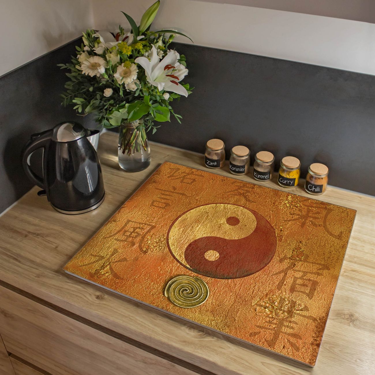 Herdabdeckplatte 1, 2 und 3 teilig Motiv Yin Yang