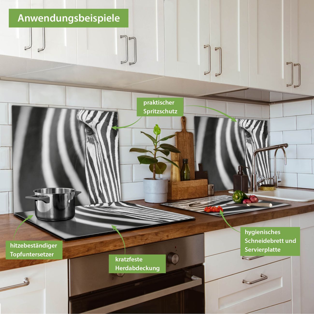 Herdabdeckplatte 1, 2 und 3 teilig Motiv Zebra En Face