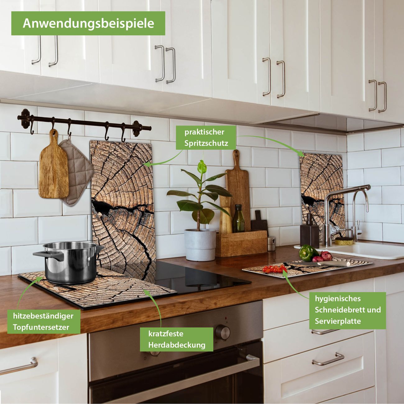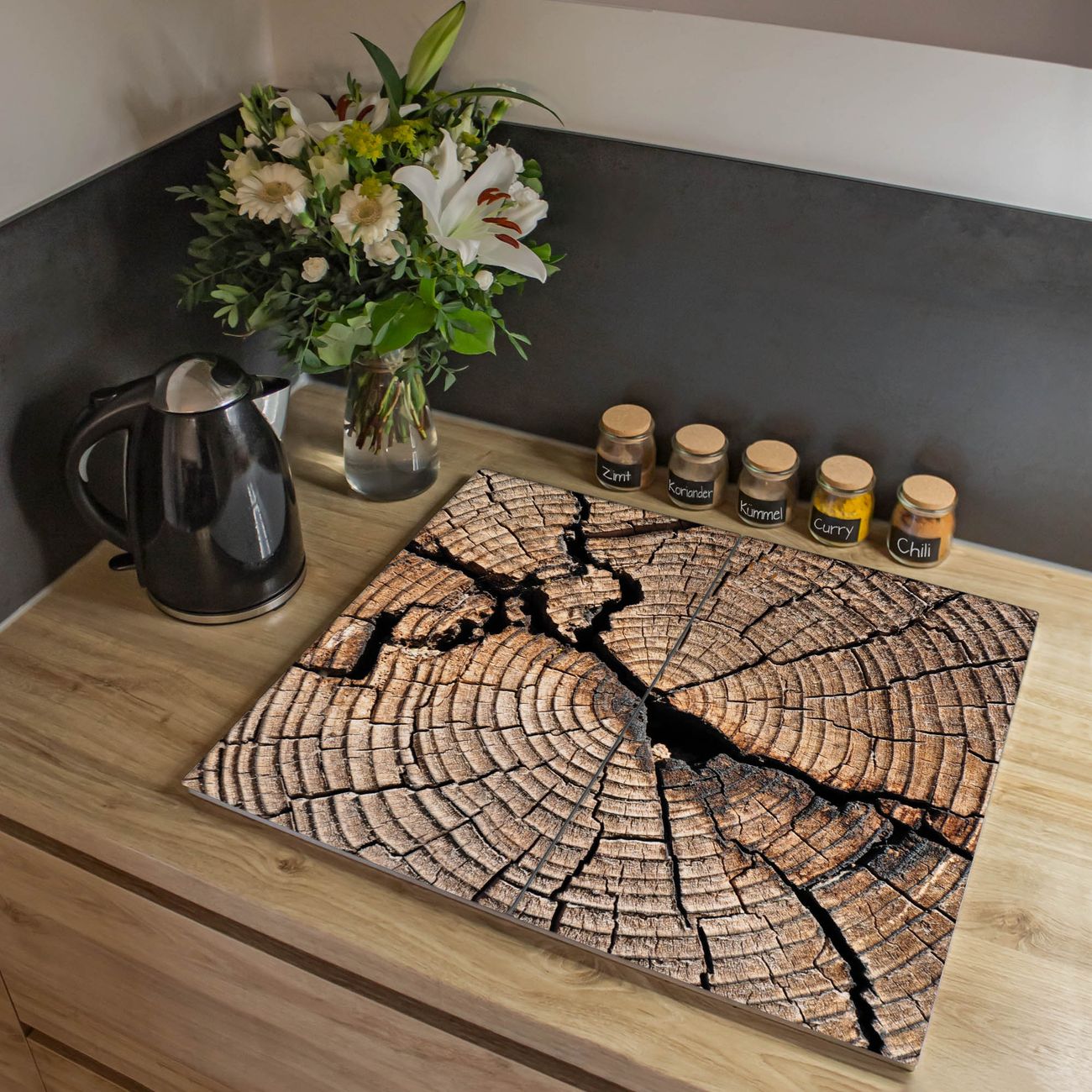 VIELSEITIG: Die Ceranfeldabdeckung ist vielseitig einsetzbar: ob als Spritzschutz hinter dem Herd für Ihre Küche oder als Glas Schneidebrett als hygienische und geruchsneutrale Unterlage. Sie können ebenfalls heiße Töpfe und Pfannen bis 100°C auf der Herdplattenabdeckung abstellen. Sie erhalten ein Multitalent für Ihre Küche. Die banjado Herdabdeckplatte aus Glas mit Motiv Zeichen Der Zeit verdeckt mit einem schönen Motiv Ihr Ceranfeld bzw. Ihren Induktionsherd. Die Herdabdeckplatte ist vielseitig einsetzbar und passt sich dabei Ihrem Einrichtungsstil an. DESIGN: Die Herdabdeckung Zeichen Der Zeit besteht aus hochwertigem, gehärtetem Glas mit einem unserer zahlreichen Motive. Sie haben die Wahl zwischen verschiedenen Maßen von einteiligen, zweiteiligen und einer dreiteiligen Herdabdeckung. Wählen Sie was zu Ihrer Einrichtung passt! DETAILS: Die Herdabdeckplatte ist vielseitig einsetzbar. Die Ecken sind für mehr Sicherheit dezent abgerundet, das Glas ist gehärtet. Sie erhalten separate Gummi Abstandshalter, damit Ihre Abdeckung rutschfest auf dem Herd steht. Diese können Sie frei positionieren, sodass die Herdabdeckung perfekt auf Ihrem Ceranfeld sitzt. BANJADO: Wir sind ein kleines Team aus dem Herzen von Sachsen und fertigen jeden Artikel nach Bestellung eigens für Sie an. Sie erhalten also keine preiswerte Importware, sondern Handarbeit. Auf Wunsch sind auch andere Farben und Größen möglich, kontakierten Sie uns gern.