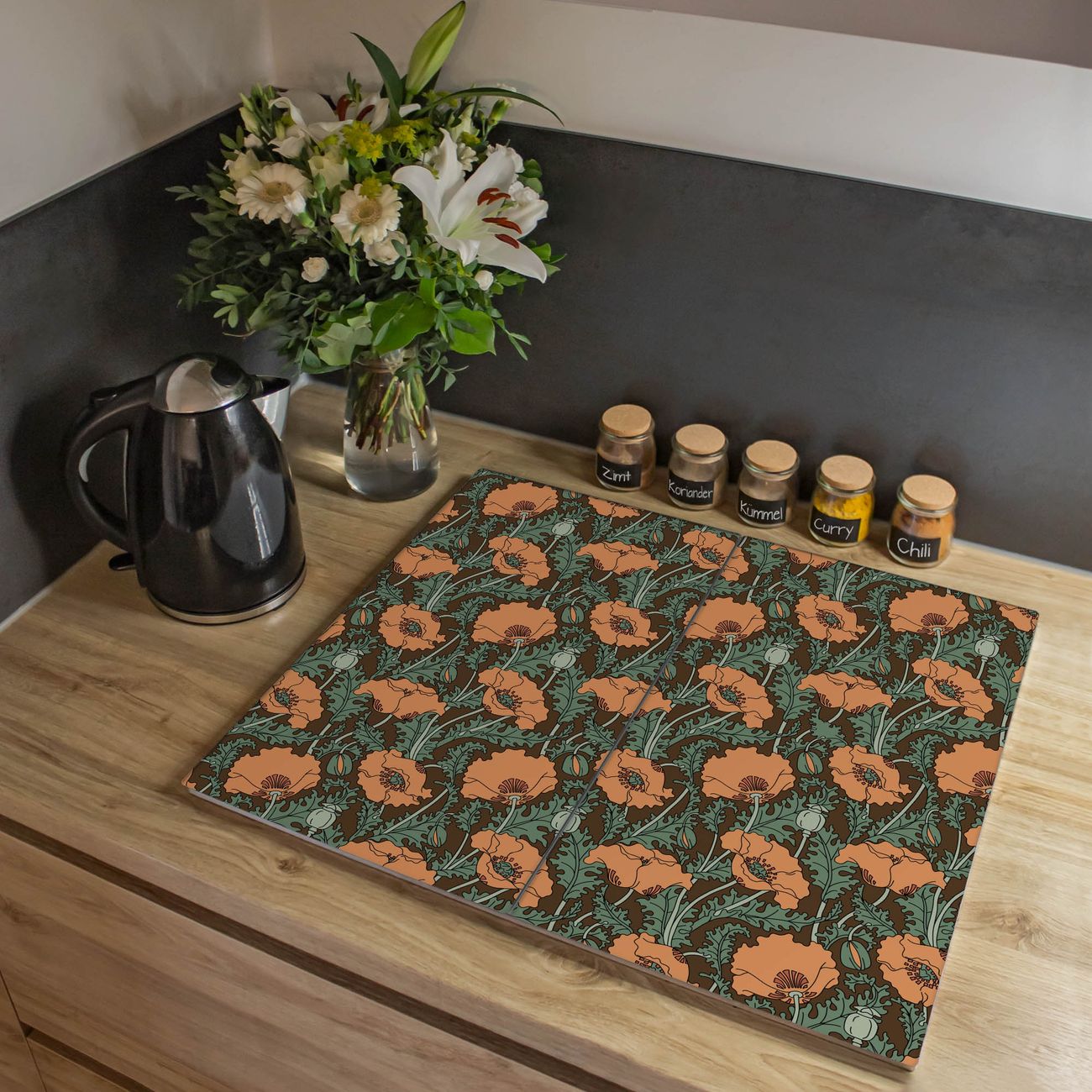 Herdabdeckplatte 1, 2 und 3 teilig Motiv Zeichnung Mohn