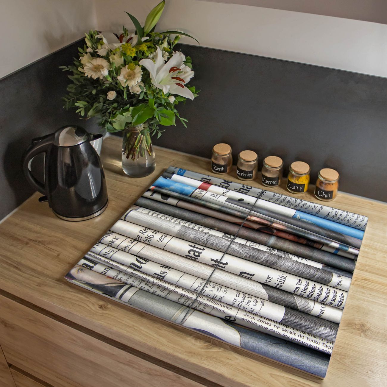 VIELSEITIG: Die Ceranfeldabdeckung ist vielseitig einsetzbar: ob als Spritzschutz hinter dem Herd für Ihre Küche oder als Glas Schneidebrett als hygienische und geruchsneutrale Unterlage. Sie können ebenfalls heiße Töpfe und Pfannen bis 100°C auf der Herdplattenabdeckung abstellen. Sie erhalten ein Multitalent für Ihre Küche. Die banjado Herdabdeckplatte aus Glas mit Motiv Zeitungen verdeckt mit einem schönen Motiv Ihr Ceranfeld bzw. Ihren Induktionsherd. Die Herdabdeckplatte ist vielseitig einsetzbar und passt sich dabei Ihrem Einrichtungsstil an. DESIGN: Die Herdabdeckung Zeitungen besteht aus hochwertigem, gehärtetem Glas mit einem unserer zahlreichen Motive. Sie haben die Wahl zwischen verschiedenen Maßen von einteiligen, zweiteiligen und einer dreiteiligen Herdabdeckung. Wählen Sie was zu Ihrer Einrichtung passt! DETAILS: Die Herdabdeckplatte ist vielseitig einsetzbar. Die Ecken sind für mehr Sicherheit dezent abgerundet, das Glas ist gehärtet. Sie erhalten separate Gummi Abstandshalter, damit Ihre Abdeckung rutschfest auf dem Herd steht. Diese können Sie frei positionieren, sodass die Herdabdeckung perfekt auf Ihrem Ceranfeld sitzt. BANJADO: Wir sind ein kleines Team aus dem Herzen von Sachsen und fertigen jeden Artikel nach Bestellung eigens für Sie an. Sie erhalten also keine preiswerte Importware, sondern Handarbeit. Auf Wunsch sind auch andere Farben und Größen möglich, kontakierten Sie uns gern.