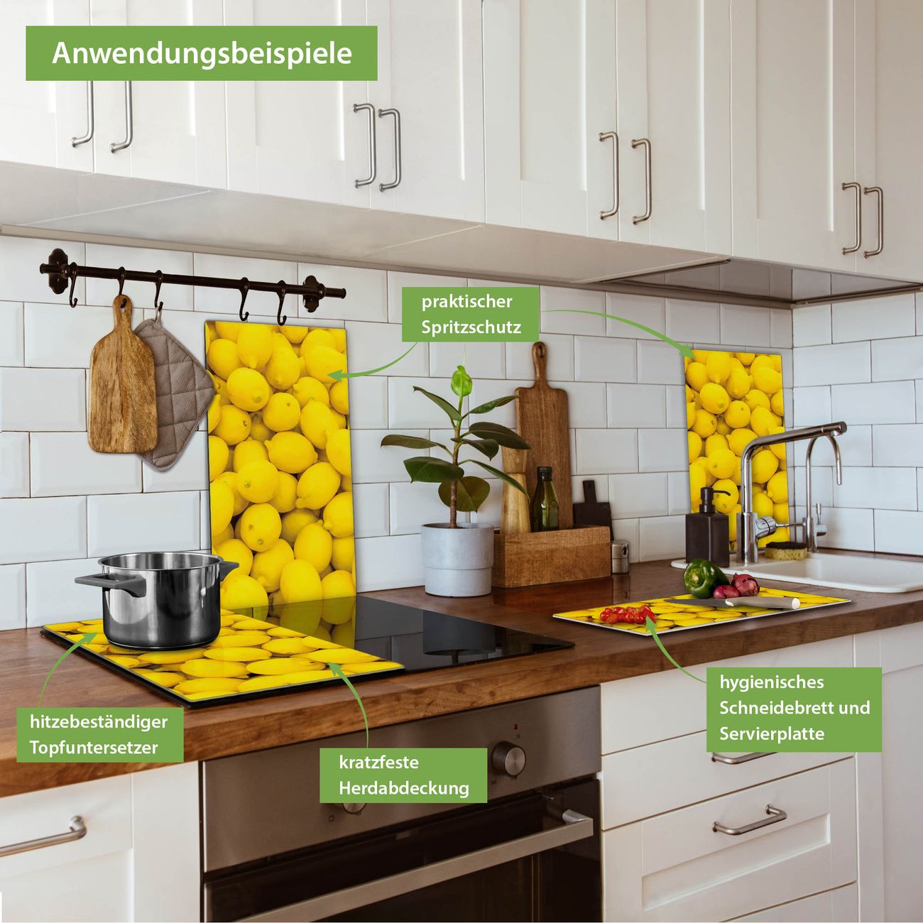 Herdabdeckplatte 1, 2 und 3 teilig Motiv Zitronen