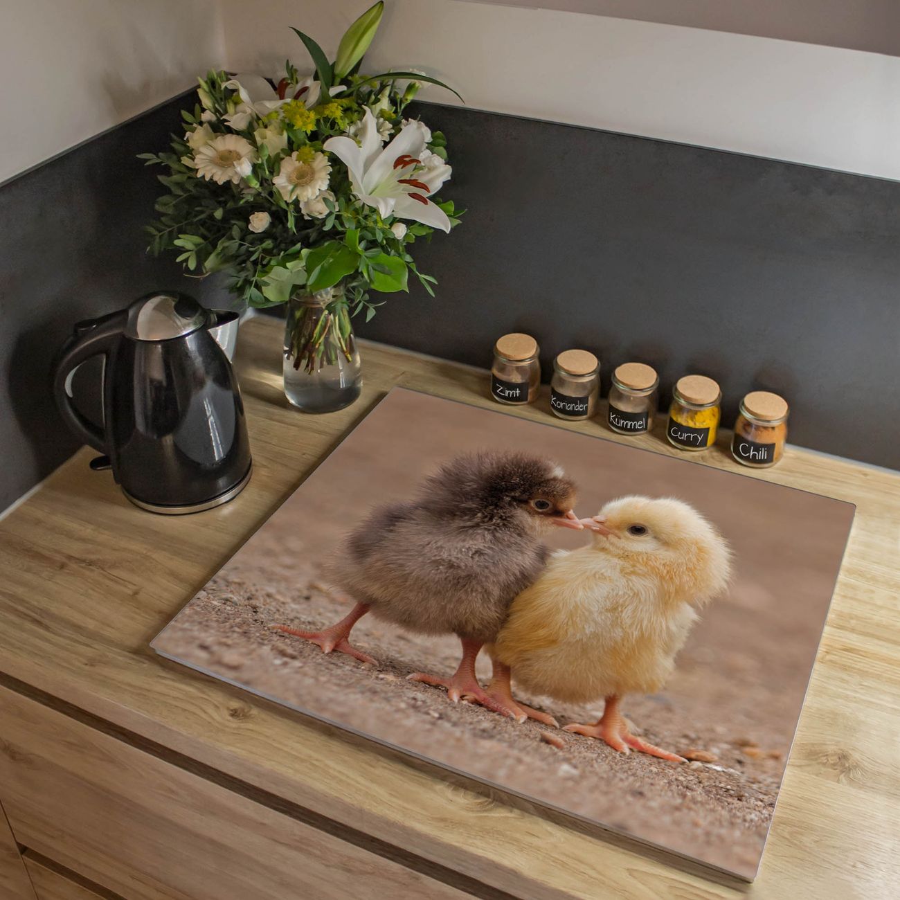Herdabdeckplatte 1, 2 und 3 teilig Motiv Zwei Küken