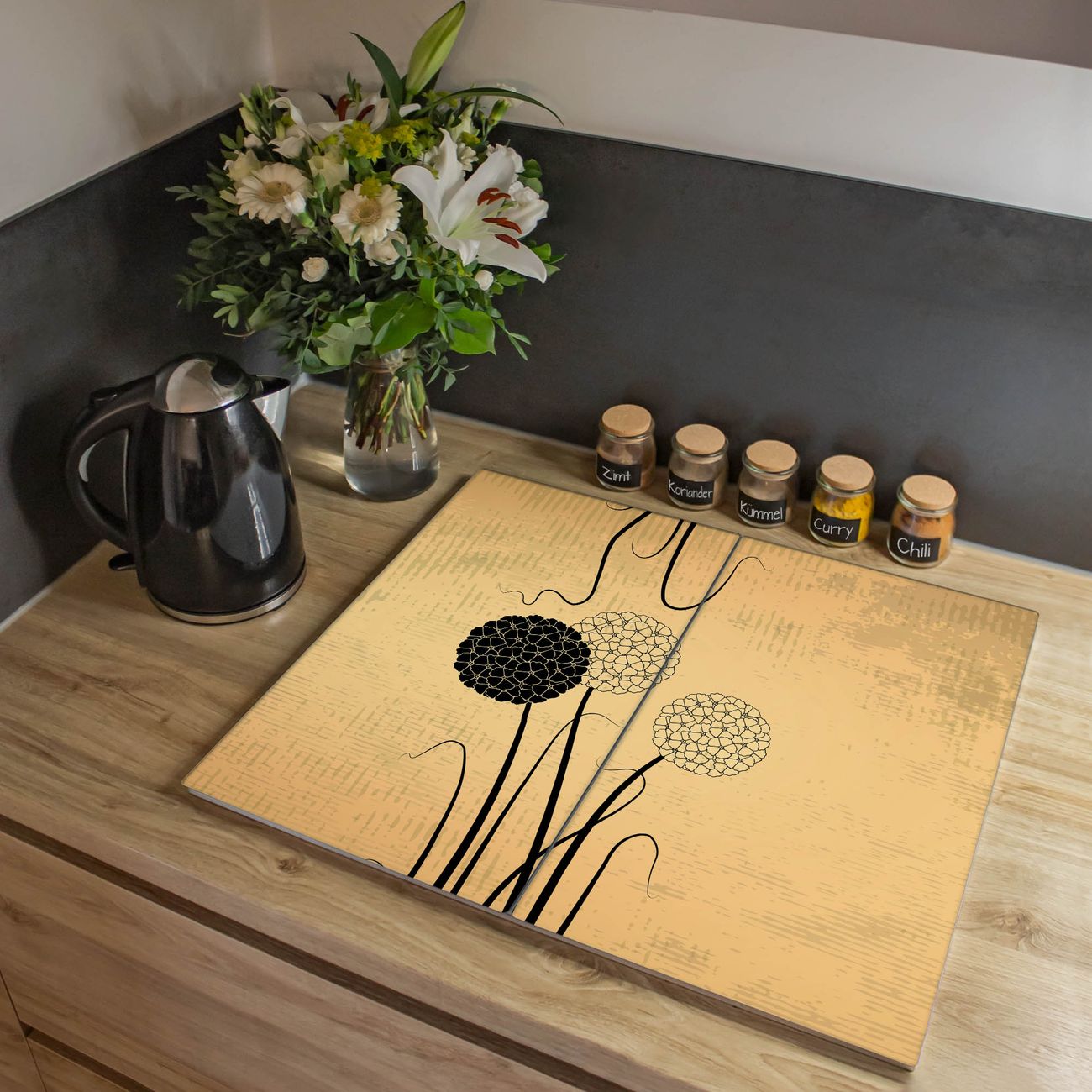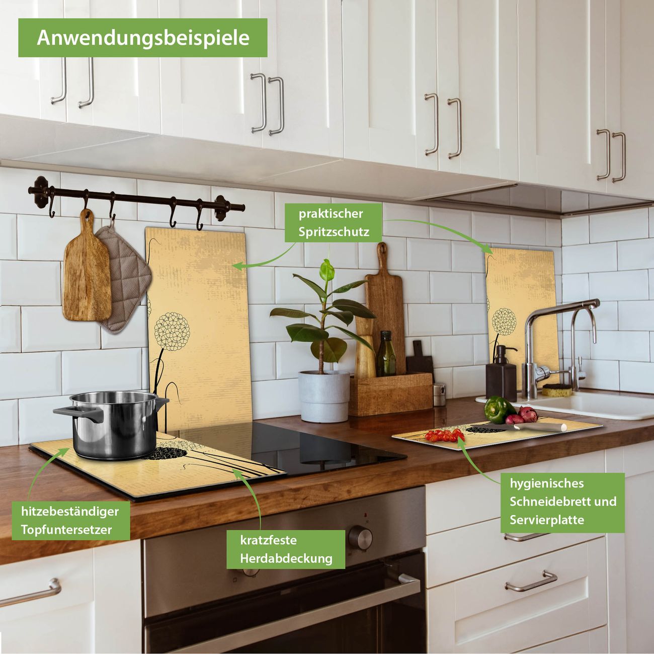 VIELSEITIG: Die Ceranfeldabdeckung ist vielseitig einsetzbar: ob als Spritzschutz hinter dem Herd für Ihre Küche oder als Glas Schneidebrett als hygienische und geruchsneutrale Unterlage. Sie können ebenfalls heiße Töpfe und Pfannen bis 100°C auf der Herdplattenabdeckung abstellen. Sie erhalten ein Multitalent für Ihre Küche. Die banjado Herdabdeckplatte aus Glas mit Motiv Zwiebel Vintage verdeckt mit einem schönen Motiv Ihr Ceranfeld bzw. Ihren Induktionsherd. Die Herdabdeckplatte ist vielseitig einsetzbar und passt sich dabei Ihrem Einrichtungsstil an. DESIGN: Die Herdabdeckung Zwiebel Vintage besteht aus hochwertigem, gehärtetem Glas mit einem unserer zahlreichen Motive. Sie haben die Wahl zwischen verschiedenen Maßen von einteiligen, zweiteiligen und einer dreiteiligen Herdabdeckung. Wählen Sie was zu Ihrer Einrichtung passt! DETAILS: Die Herdabdeckplatte ist vielseitig einsetzbar. Die Ecken sind für mehr Sicherheit dezent abgerundet, das Glas ist gehärtet. Sie erhalten separate Gummi Abstandshalter, damit Ihre Abdeckung rutschfest auf dem Herd steht. Diese können Sie frei positionieren, sodass die Herdabdeckung perfekt auf Ihrem Ceranfeld sitzt. BANJADO: Wir sind ein kleines Team aus dem Herzen von Sachsen und fertigen jeden Artikel nach Bestellung eigens für Sie an. Sie erhalten also keine preiswerte Importware, sondern Handarbeit. Auf Wunsch sind auch andere Farben und Größen möglich, kontakierten Sie uns gern.
