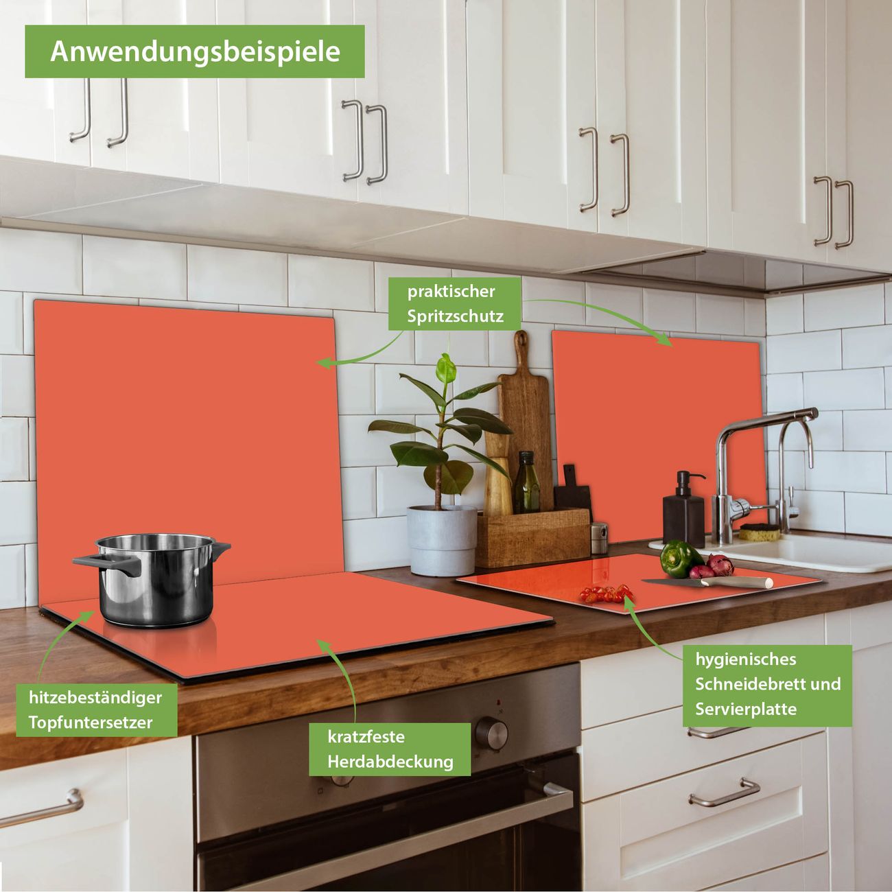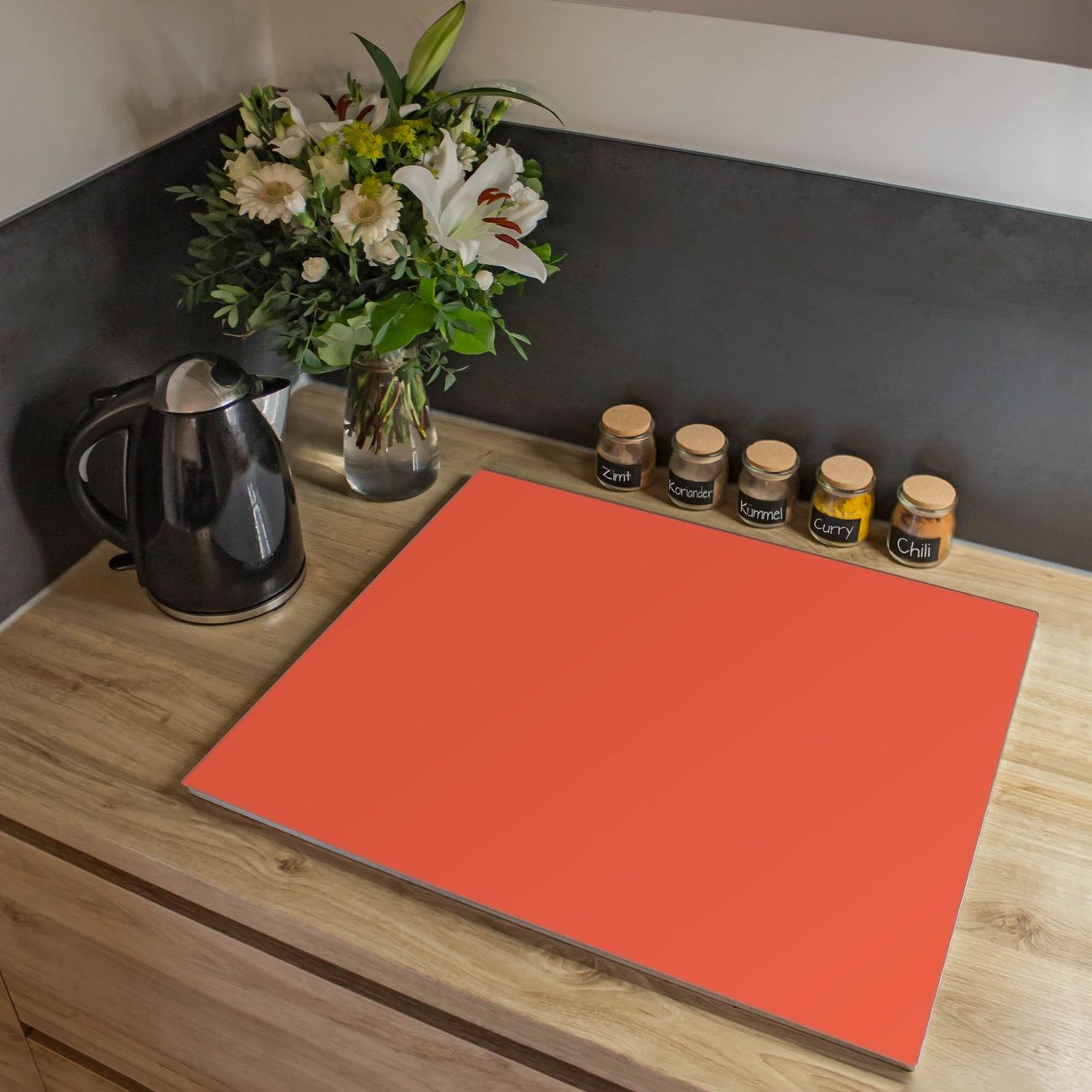 VIELSEITIG: Die Ceranfeldabdeckung ist vielseitig einsetzbar: ob als Spritzschutz hinter dem Herd für Ihre Küche oder als Glas Schneidebrett als hygienische und geruchsneutrale Unterlage. Sie können ebenfalls heiße Töpfe und Pfannen bis 100°C auf der Herdplattenabdeckung abstellen. Sie erhalten ein Multitalent für Ihre Küche. Die banjado Herdabdeckplatte aus Glas mit Farbe Orange verdeckt mit einem schönen Farbe Ihr Ceranfeld bzw. Ihren Induktionsherd. Die Herdabdeckplatte ist vielseitig einsetzbar und passt sich dabei Ihrem Einrichtungsstil an. DESIGN: Die Herdabdeckung Orange besteht aus hochwertigem, gehärtetem Glas mit einem unserer zahlreichen Farbee. Sie haben die Wahl zwischen verschiedenen Maßen von einteiligen, zweiteiligen und einer dreiteiligen Herdabdeckung. Wählen Sie was zu Ihrer Einrichtung passt! DETAILS: Die Herdabdeckplatte ist vielseitig einsetzbar. Die Ecken sind für mehr Sicherheit dezent abgerundet, das Glas ist gehärtet. Sie erhalten separate Gummi Abstandshalter, damit Ihre Abdeckung rutschfest auf dem Herd steht. Diese können Sie frei positionieren, sodass die Herdabdeckung perfekt auf Ihrem Ceranfeld sitzt. BANJADO: Wir sind ein kleines Team aus dem Herzen von Sachsen und fertigen jeden Artikel nach Bestellung eigens für Sie an. Sie erhalten also keine preiswerte Importware, sondern Handarbeit. Auf Wunsch sind auch andere Farben und Größen möglich, kontakierten Sie uns gern.