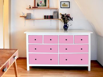 FUNKTION: Die banjado Möbelfolie mit Farbe Rose zaubert im Handumdrehen aus Ihrer Ikea HEMNES Kommode ein individuell gestaltetes Unikat. Verziert mit einem traumhaften Farbe verbindet die HEMNES Kommode jede Menge Stauraum mit ansprechendem Design. Die gezeigte IKEA HEMNES Komode ist nicht im Angebot enthalten. DESIGN: Die banjado Klebefolie gestaltet Ihr Ikea Möbelstück völlig neu. So passt sich die HEMNESKommode verschiedenen Einrichtungsstilen an. Lassen Sie Ihrer Kreativität freien Raum, wir helfen Ihnen bei der Umsetzung. DETAILS: Der banjado Rose Möbelsticker ist selbstklebend und wird Ihnen bereits fertig zugeschnitten geliefert. Sie können Schritt für Schritt jede Schublade einzeln bekleben, eine detaillierte Verklebeanleitung liegt selbstverständlich bei. Die Folie ist mit einem zusätzlichen Laminat überzogen, dass Ihr Möbelstück zusätzlich vor Kratzern schützt. NUTZEN: Sie können die banjado Möbelfolie wunderbar nutzen, um abgeplatzte, schmutzige oder unschöne Stellen an Ihrer Malm Kommode zu überdecken. Mit einem wechselnden Design können Sie Ihren Einrichtungsstil ändern oder aus einer Kinderkommode eine Flurkommode gestalten. Alle verwendeten Farben sind lösungsmittelfrei. BANJADO: Ihre Design Folie wird in Sachsen in einer kleinen Manufaktur angefertigt und verpackt. Wir legen großen Wert auf die Verbindung von Funktionalität und Design.