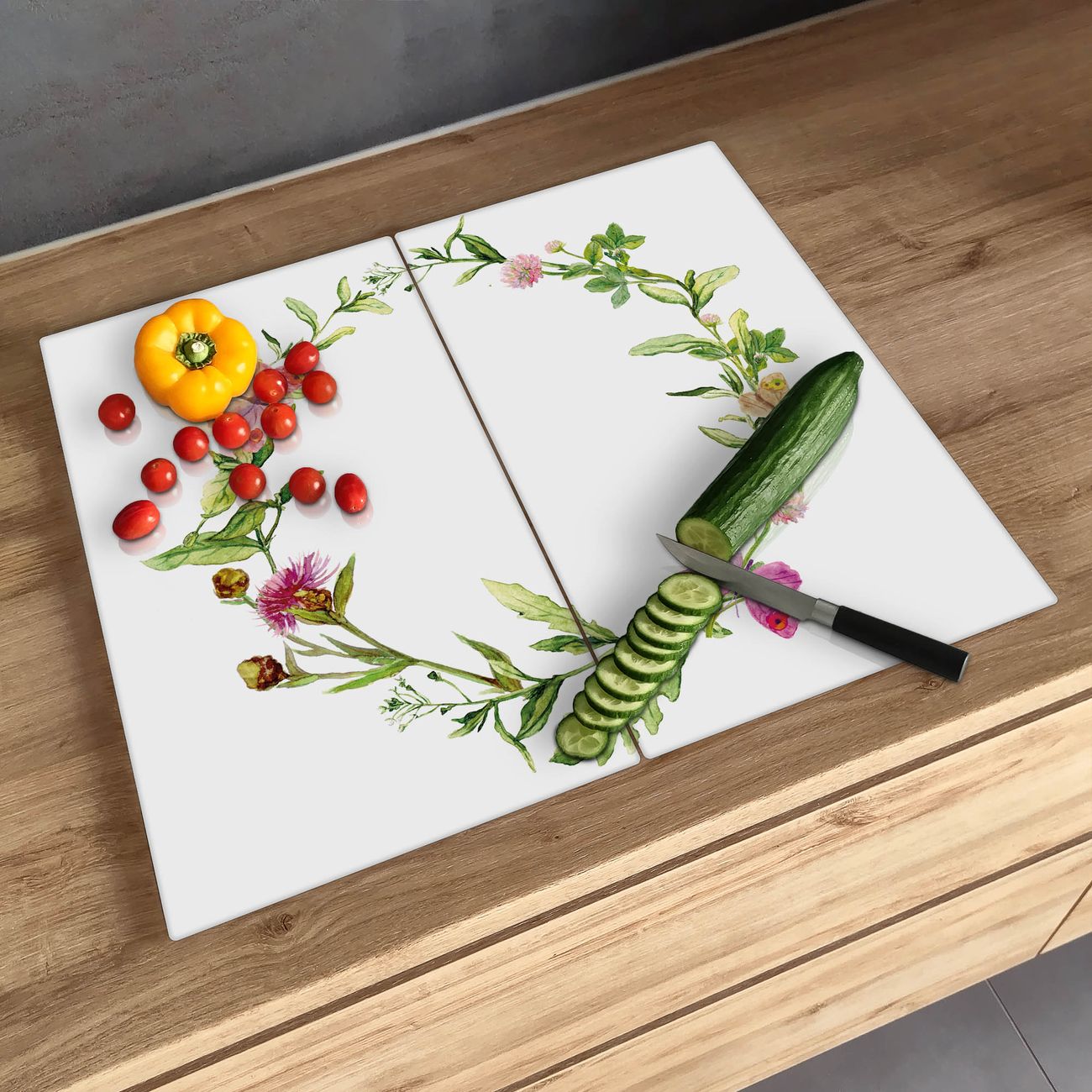 Schneidebrett 1 und 2 teilig Motiv Aquarell Blumenring