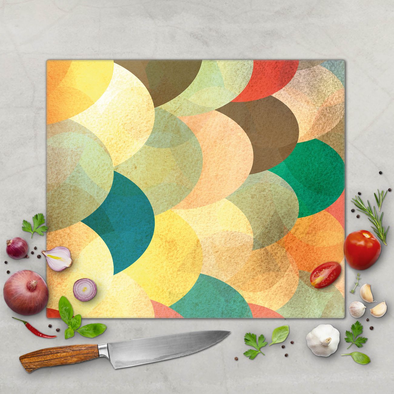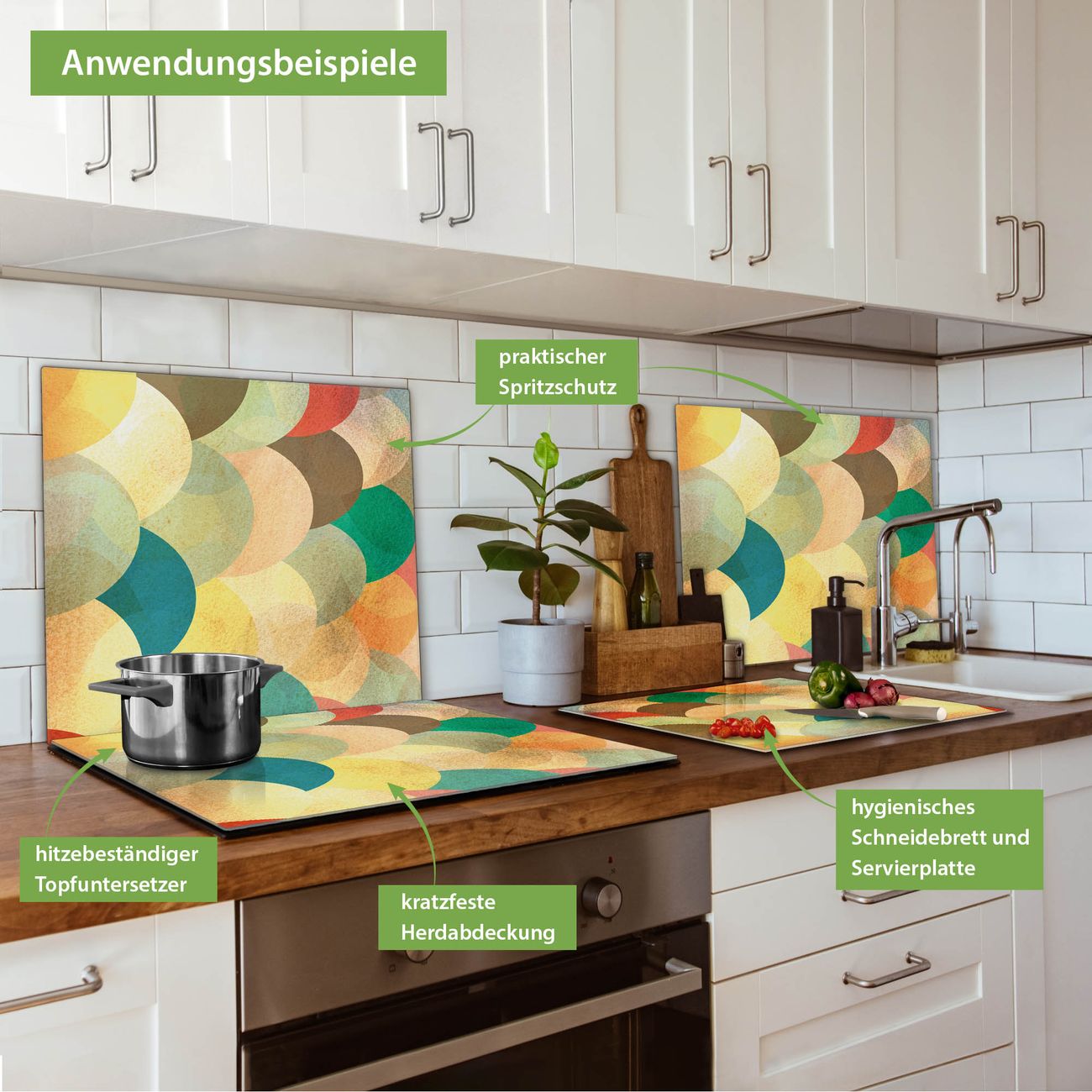FUNKTION: Das banjado Schneidebrett mit Motiv Aquarell Schuppen ist groß und rutschfest und damit ideal für Ihre Küche. Besonders praktisch. Das Schneidebrett ist vielseitig einsetzbar: ob als Spritzschutz hinter dem Herd für Ihre Küche oder als Glas Schneidebrett als hygienische und geruchsneutrale Unterlage. Sie können ebenfalls heiße Töpfe und Pfannen bis 100°C auf der Herdplattenabdeckung abstellen. Sie erhalten ein Multitalent für Ihre Küche. QUALITÄT: Die Schneideplatte Glas besteht aus hochwertigem, gehärtetem und hitzebeständigem Glas. Wählen Sie aus einem unserer zahlreichen Motive das passende Design für Ihre Küche aus. DETAILS: Das Schneidebrett Glas groß ist in verschiedenen Größen verfügbar. Sie erhalten separate Gumminoppen damit Ihr großes Schneidebrett rutschfest in der Küche steht. VIELSEITIG: Das Schneidebrett modern ist ein Allrounder - als Schneideunterlage Küche direkt auf dem Herd oder separat und als Spritzschutz an der Wand aufgestellt - ein praktisches Küchenutensil. BANJADO: Auf Wunsch fertigen wir das Glas Schneide Brett auch als Sondergröße an. Mehrteilige Platten sind auch möglich. Kontaktieren Sie uns gern für eine Spezialanfertigung Ihrer Glasplatte Küche.