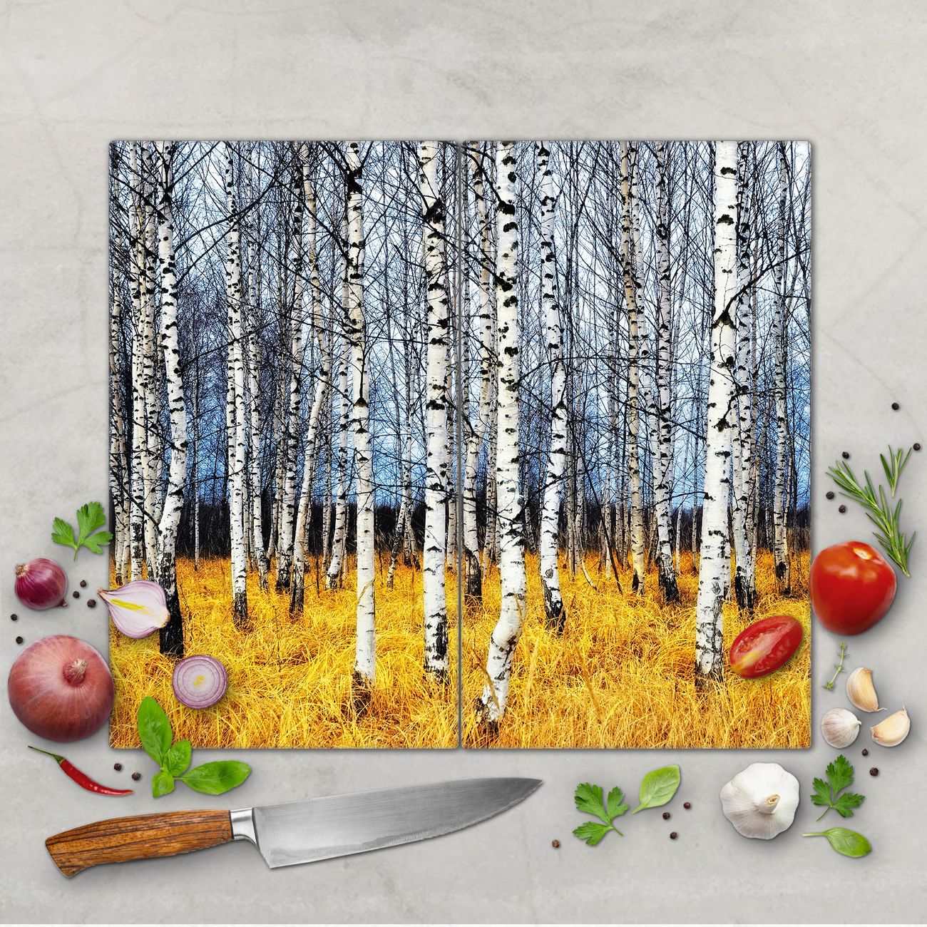 Schneidebrett 1 und 2 teilig Motiv Birkenhain