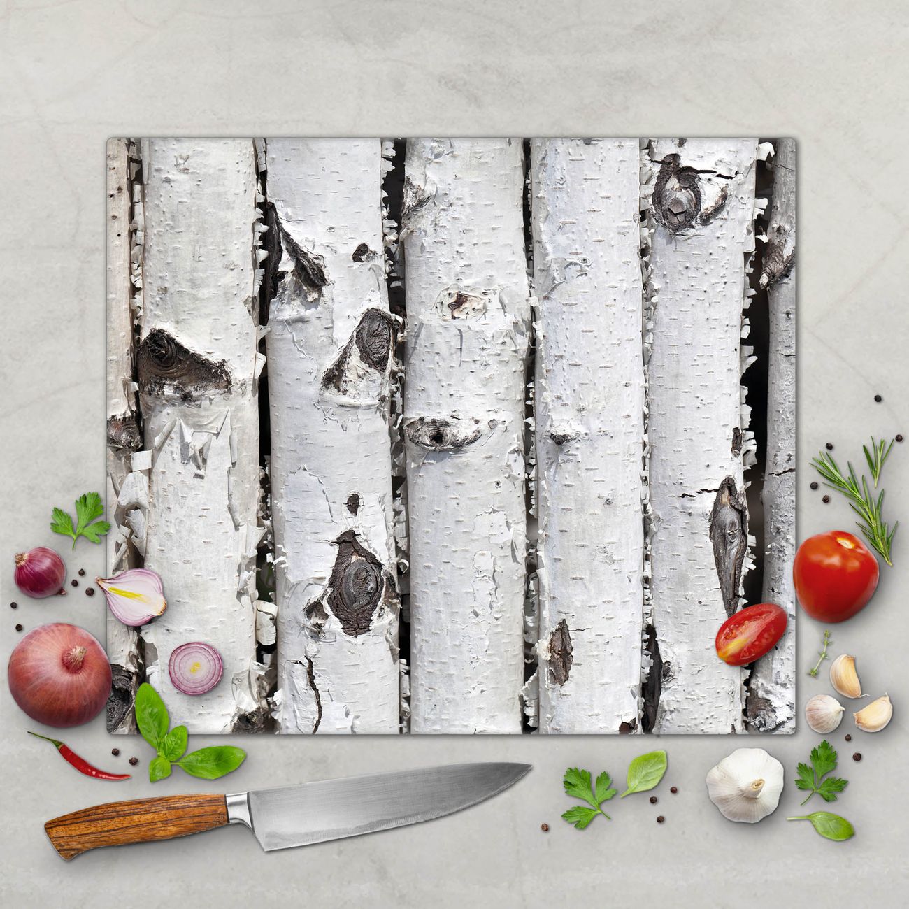 Schneidebrett 1 und 2 teilig Motiv Birkenrinde