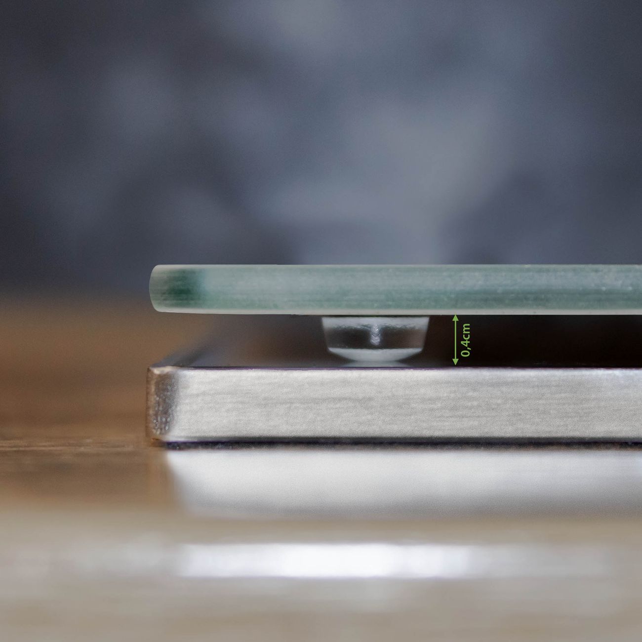 - Zubehör: 4mm hohe Gummi Abstandshalter (können individuell positioniert werden)