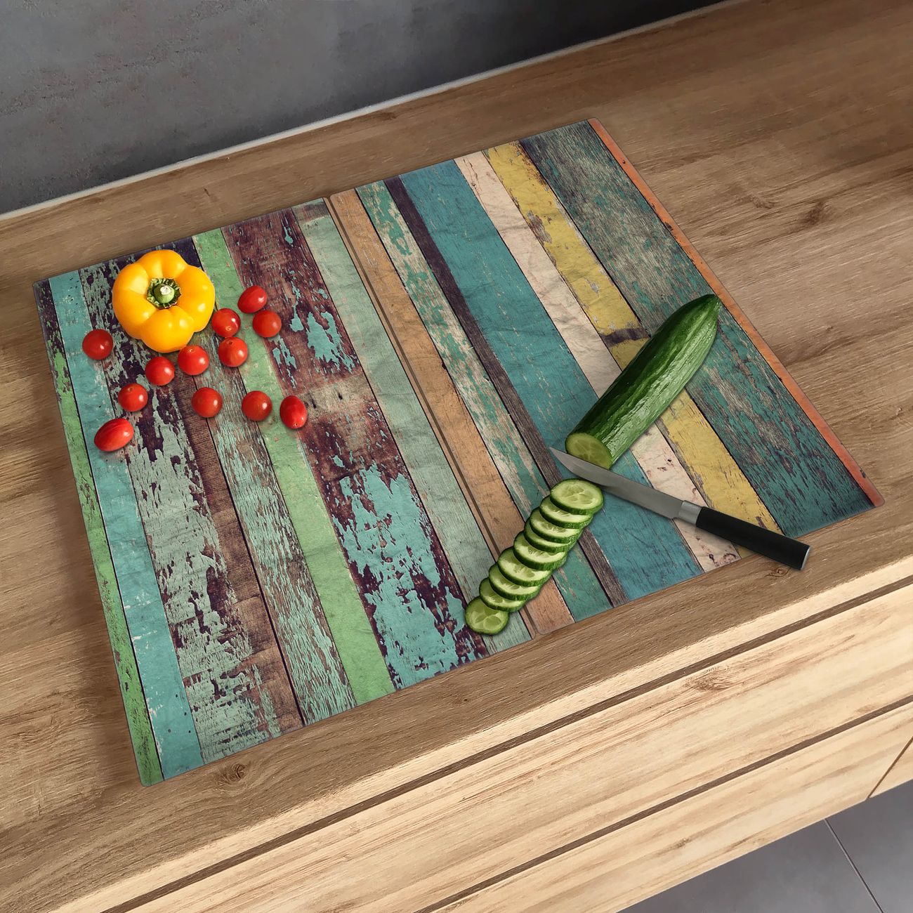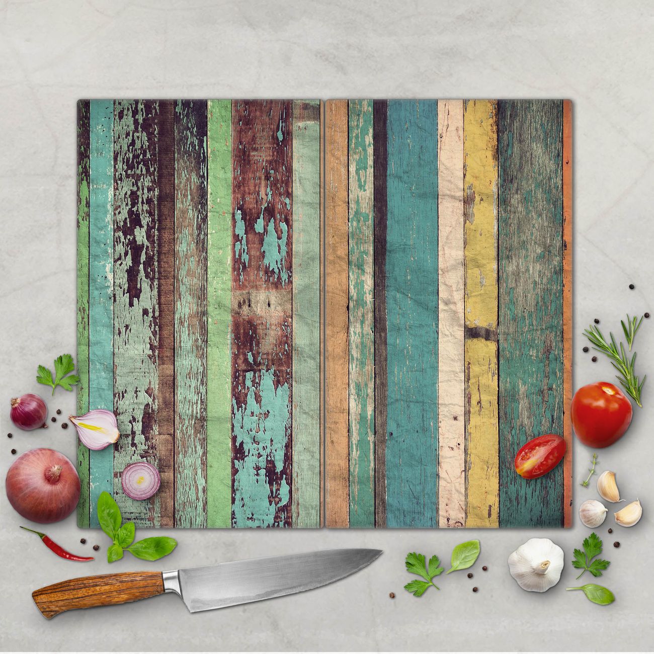 Schneidebrett 1 und 2 teilig Motiv Bunte Bretterwand