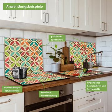 FUNKTION: Das banjado Schneidebrett mit Motiv Diamant Muster ist groß und rutschfest und damit ideal für Ihre Küche. Besonders praktisch. Das Schneidebrett ist vielseitig einsetzbar: ob als Spritzschutz hinter dem Herd für Ihre Küche oder als Glas Schneidebrett als hygienische und geruchsneutrale Unterlage. Sie können ebenfalls heiße Töpfe und Pfannen bis 100°C auf der Herdplattenabdeckung abstellen. Sie erhalten ein Multitalent für Ihre Küche. QUALITÄT: Die Schneideplatte Glas besteht aus hochwertigem, gehärtetem und hitzebeständigem Glas. Wählen Sie aus einem unserer zahlreichen Motive das passende Design für Ihre Küche aus. DETAILS: Das Schneidebrett Glas groß ist in verschiedenen Größen verfügbar. Sie erhalten separate Gumminoppen damit Ihr großes Schneidebrett rutschfest in der Küche steht. VIELSEITIG: Das Schneidebrett modern ist ein Allrounder - als Schneideunterlage Küche direkt auf dem Herd oder separat und als Spritzschutz an der Wand aufgestellt - ein praktisches Küchenutensil. BANJADO: Auf Wunsch fertigen wir das Glas Schneide Brett auch als Sondergröße an. Mehrteilige Platten sind auch möglich. Kontaktieren Sie uns gern für eine Spezialanfertigung Ihrer Glasplatte Küche.