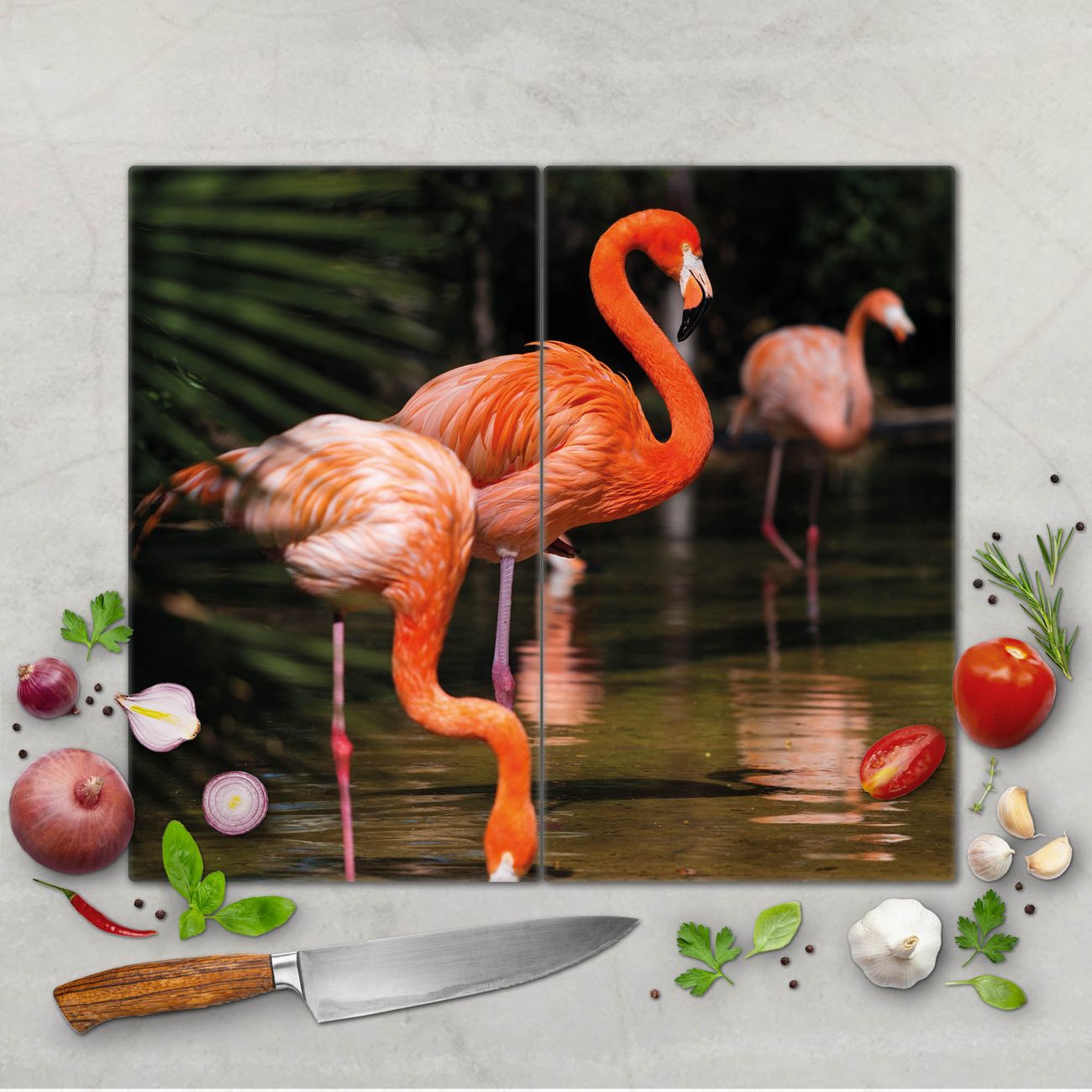 Schneidebrett 1 und 2 teilig Motiv Flamingo