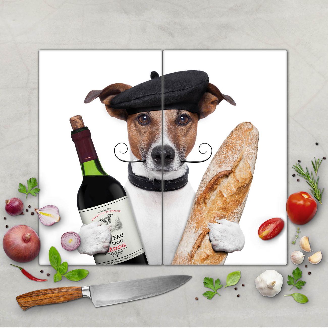 Schneidebrett 1 und 2 teilig Motiv Franzose Jack Russel