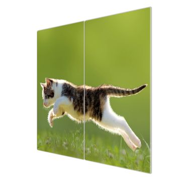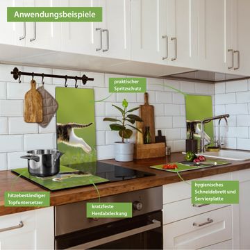 FUNKTION: Das banjado Schneidebrett mit Motiv Jagende Katze ist groß und rutschfest und damit ideal für Ihre Küche. Besonders praktisch. Das Schneidebrett ist vielseitig einsetzbar: ob als Spritzschutz hinter dem Herd für Ihre Küche oder als Glas Schneidebrett als hygienische und geruchsneutrale Unterlage. Sie können ebenfalls heiße Töpfe und Pfannen bis 100°C auf der Herdplattenabdeckung abstellen. Sie erhalten ein Multitalent für Ihre Küche. QUALITÄT: Die Schneideplatte Glas besteht aus hochwertigem, gehärtetem und hitzebeständigem Glas. Wählen Sie aus einem unserer zahlreichen Motive das passende Design für Ihre Küche aus. DETAILS: Das Schneidebrett Glas groß ist in verschiedenen Größen verfügbar. Sie erhalten separate Gumminoppen damit Ihr großes Schneidebrett rutschfest in der Küche steht. VIELSEITIG: Das Schneidebrett modern ist ein Allrounder - als Schneideunterlage Küche direkt auf dem Herd oder separat und als Spritzschutz an der Wand aufgestellt - ein praktisches Küchenutensil. BANJADO: Auf Wunsch fertigen wir das Glas Schneide Brett auch als Sondergröße an. Mehrteilige Platten sind auch möglich. Kontaktieren Sie uns gern für eine Spezialanfertigung Ihrer Glasplatte Küche.