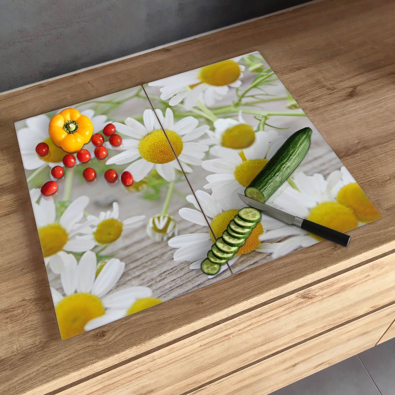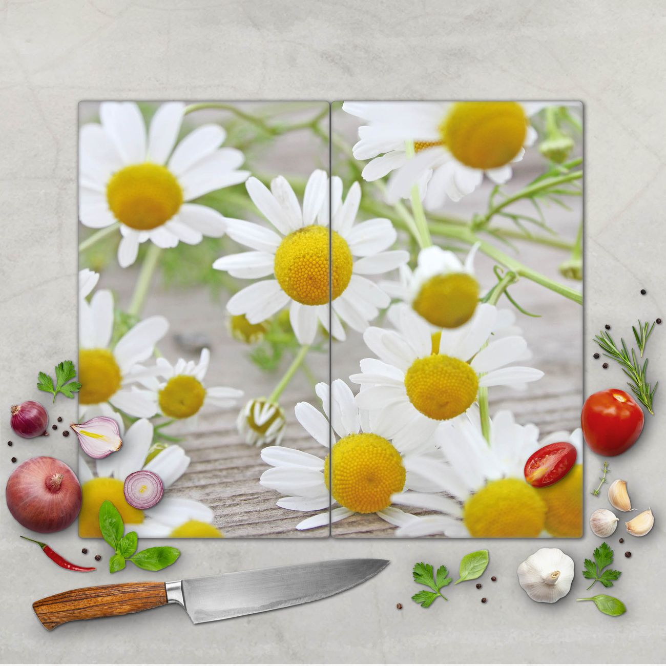 Schneidebrett 1 und 2 teilig Motiv Kamillenblüten