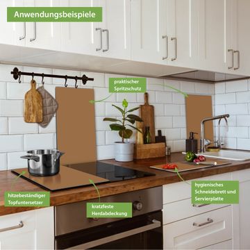 FUNKTION: Das banjado Schneidebrett ist groß und rutschfest & damit ideal für Ihre Küche. Besonders praktisch - es kann ebenfalls als Herdabdeckung Ceranfeld oder Spritzschutz angewandt werden. QUALITÄT: Die Schneideplatte Glas besteht aus hochwertigem, gehärtetem & hitzebeständigem Glas. Wählen Sie aus einem unserer zahlreichen Farbee das passende Design für Ihre Küche aus. DETAILS: Das Schneidebrett Glas groß ist in verschiedenen Größen verfügbar. Sie erhalten separate Gumminoppen damit Ihr großes Schneidebrett rutschfest in der Küche steht. VIELSEITIG: Das Schneidebrett modern ist ein Allrounder - als Schneideunterlage Küche direkt auf dem Herd oder separat & als Spritzschutz an der Wand aufgestellt - ein praktisches Küchenutensil. BANJADO: Auf Wunsch fertigen wir das Glas Schneide Brett auch als Sondergröße an. Mehrteilige Platten sind auch möglich. Kontaktieren Sie uns gern für eine Spezialanfertigung Ihrer Glasplatte Küche.