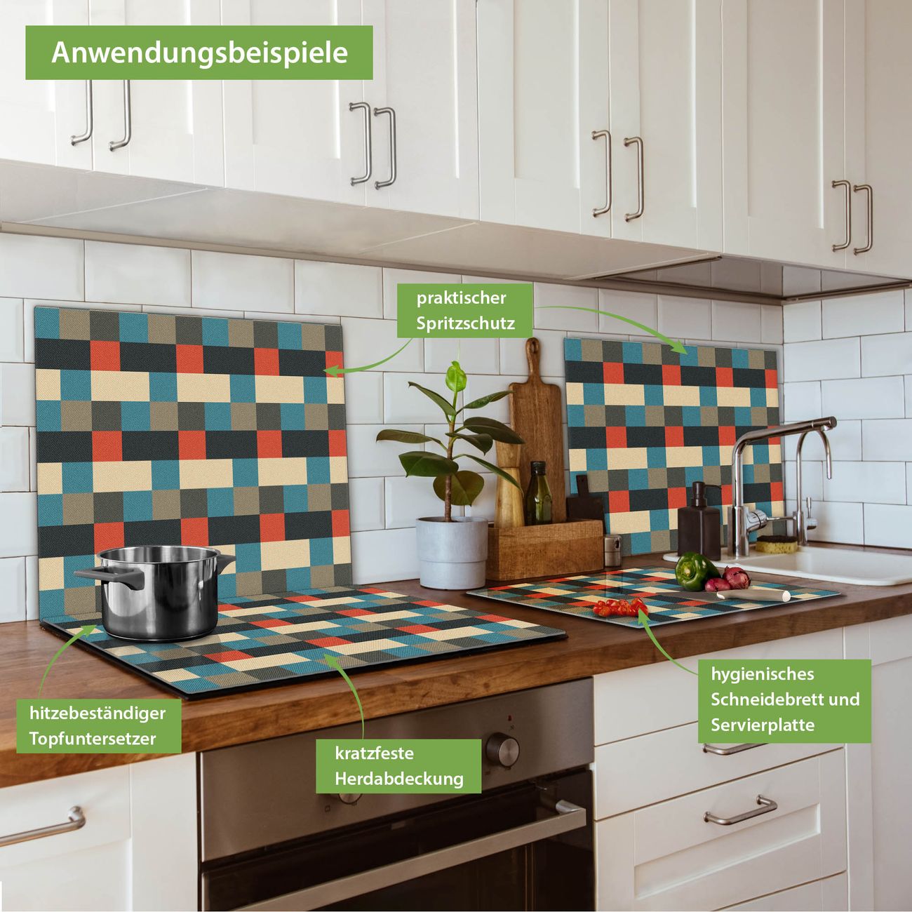 FUNKTION: Das banjado Schneidebrett mit Motiv Lausanne ist groß und rutschfest und damit ideal für Ihre Küche. Besonders praktisch. Das Schneidebrett ist vielseitig einsetzbar: ob als Spritzschutz hinter dem Herd für Ihre Küche oder als Glas Schneidebrett als hygienische und geruchsneutrale Unterlage. Sie können ebenfalls heiße Töpfe und Pfannen bis 100°C auf der Herdplattenabdeckung abstellen. Sie erhalten ein Multitalent für Ihre Küche. QUALITÄT: Die Schneideplatte Glas besteht aus hochwertigem, gehärtetem und hitzebeständigem Glas. Wählen Sie aus einem unserer zahlreichen Motive das passende Design für Ihre Küche aus. DETAILS: Das Schneidebrett Glas groß ist in verschiedenen Größen verfügbar. Sie erhalten separate Gumminoppen damit Ihr großes Schneidebrett rutschfest in der Küche steht. VIELSEITIG: Das Schneidebrett modern ist ein Allrounder - als Schneideunterlage Küche direkt auf dem Herd oder separat und als Spritzschutz an der Wand aufgestellt - ein praktisches Küchenutensil. BANJADO: Auf Wunsch fertigen wir das Glas Schneide Brett auch als Sondergröße an. Mehrteilige Platten sind auch möglich. Kontaktieren Sie uns gern für eine Spezialanfertigung Ihrer Glasplatte Küche.