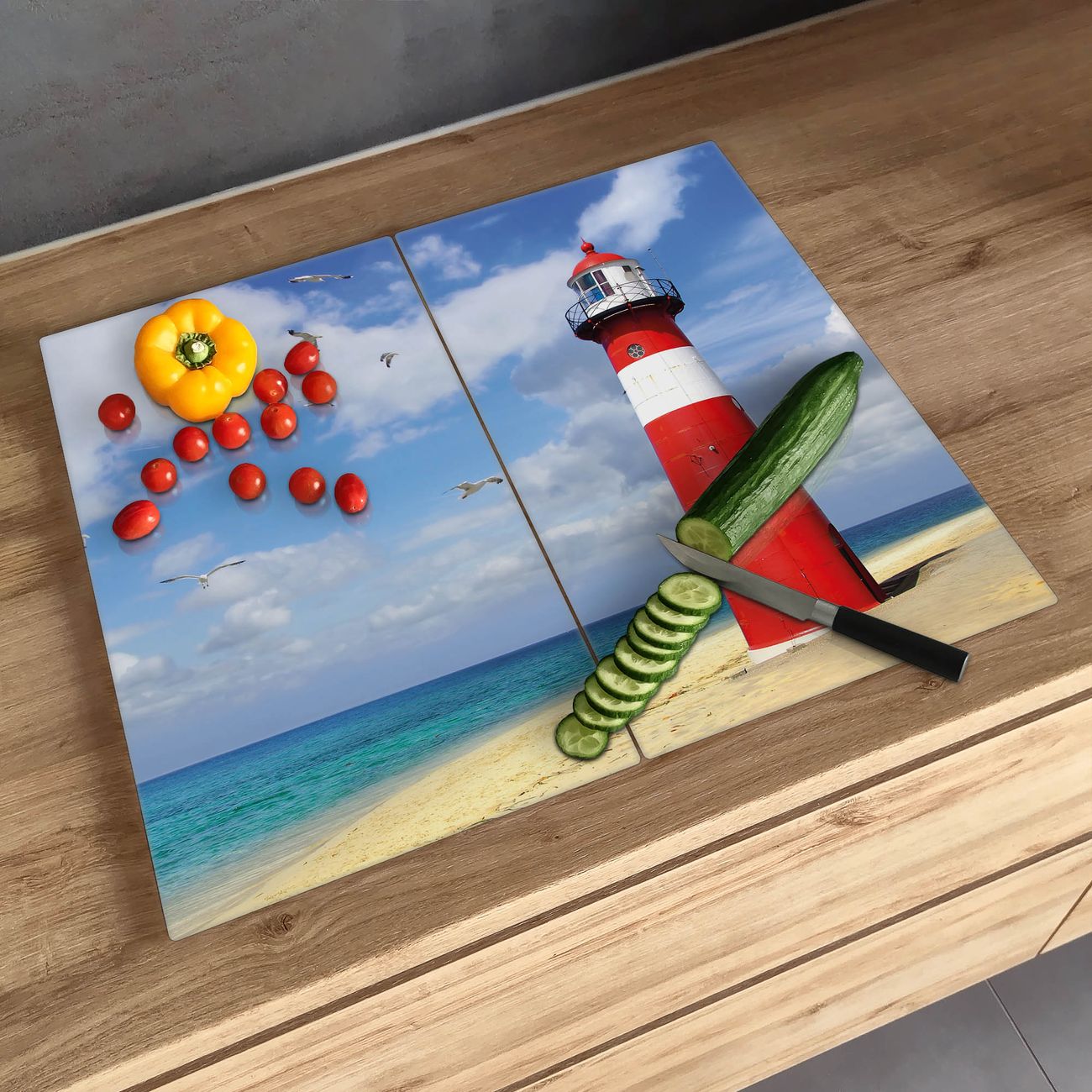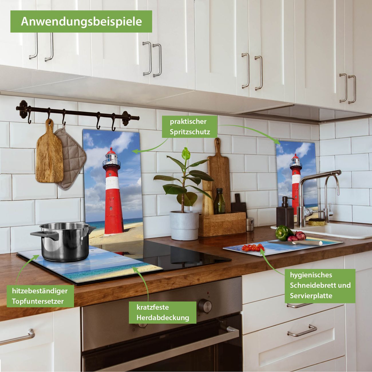 FUNKTION: Das banjado Schneidebrett mit Motiv Leuchtturm Westkapelle ist groß und rutschfest und damit ideal für Ihre Küche. Besonders praktisch. Das Schneidebrett ist vielseitig einsetzbar: ob als Spritzschutz hinter dem Herd für Ihre Küche oder als Glas Schneidebrett als hygienische und geruchsneutrale Unterlage. Sie können ebenfalls heiße Töpfe und Pfannen bis 100°C auf der Herdplattenabdeckung abstellen. Sie erhalten ein Multitalent für Ihre Küche. QUALITÄT: Die Schneideplatte Glas besteht aus hochwertigem, gehärtetem und hitzebeständigem Glas. Wählen Sie aus einem unserer zahlreichen Motive das passende Design für Ihre Küche aus. DETAILS: Das Schneidebrett Glas groß ist in verschiedenen Größen verfügbar. Sie erhalten separate Gumminoppen damit Ihr großes Schneidebrett rutschfest in der Küche steht. VIELSEITIG: Das Schneidebrett modern ist ein Allrounder - als Schneideunterlage Küche direkt auf dem Herd oder separat und als Spritzschutz an der Wand aufgestellt - ein praktisches Küchenutensil. BANJADO: Auf Wunsch fertigen wir das Glas Schneide Brett auch als Sondergröße an. Mehrteilige Platten sind auch möglich. Kontaktieren Sie uns gern für eine Spezialanfertigung Ihrer Glasplatte Küche.
