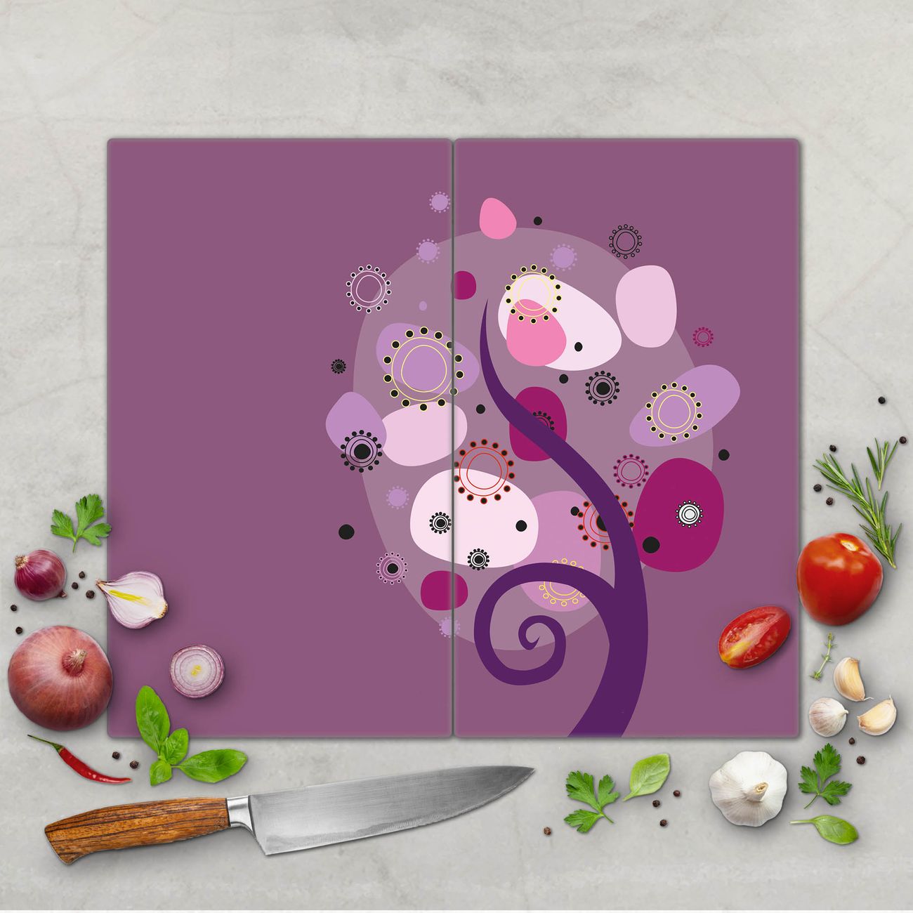 Schneidebrett 1 und 2 teilig Motiv Lila Baum