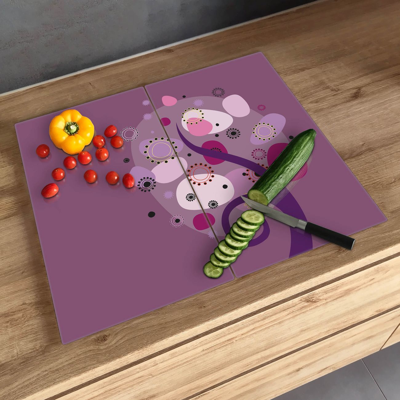 FUNKTION: Das banjado Schneidebrett mit Motiv Lila Baum ist groß und rutschfest und damit ideal für Ihre Küche. Besonders praktisch. Das Schneidebrett ist vielseitig einsetzbar: ob als Spritzschutz hinter dem Herd für Ihre Küche oder als Glas Schneidebrett als hygienische und geruchsneutrale Unterlage. Sie können ebenfalls heiße Töpfe und Pfannen bis 100°C auf der Herdplattenabdeckung abstellen. Sie erhalten ein Multitalent für Ihre Küche. QUALITÄT: Die Schneideplatte Glas besteht aus hochwertigem, gehärtetem und hitzebeständigem Glas. Wählen Sie aus einem unserer zahlreichen Motive das passende Design für Ihre Küche aus. DETAILS: Das Schneidebrett Glas groß ist in verschiedenen Größen verfügbar. Sie erhalten separate Gumminoppen damit Ihr großes Schneidebrett rutschfest in der Küche steht. VIELSEITIG: Das Schneidebrett modern ist ein Allrounder - als Schneideunterlage Küche direkt auf dem Herd oder separat und als Spritzschutz an der Wand aufgestellt - ein praktisches Küchenutensil. BANJADO: Auf Wunsch fertigen wir das Glas Schneide Brett auch als Sondergröße an. Mehrteilige Platten sind auch möglich. Kontaktieren Sie uns gern für eine Spezialanfertigung Ihrer Glasplatte Küche.