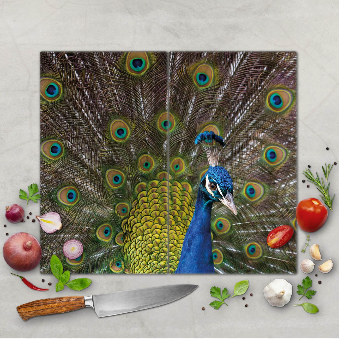 Schneidebrett 1 und 2 teilig Motiv Pfau
