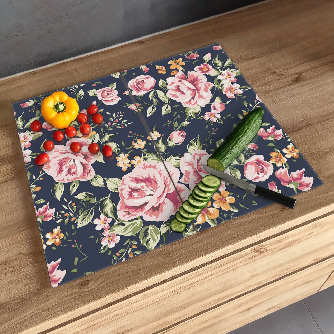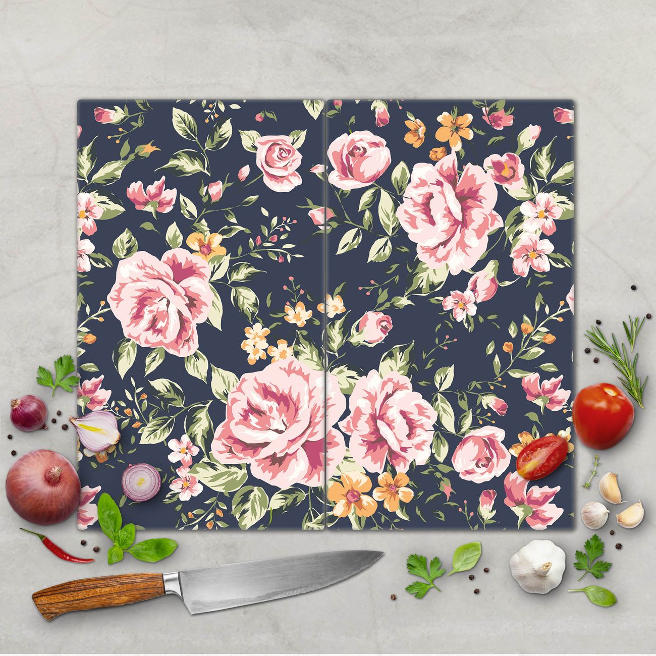 Schneidebrett 1 und 2 teilig Motiv Rosen Auf Anthrazit