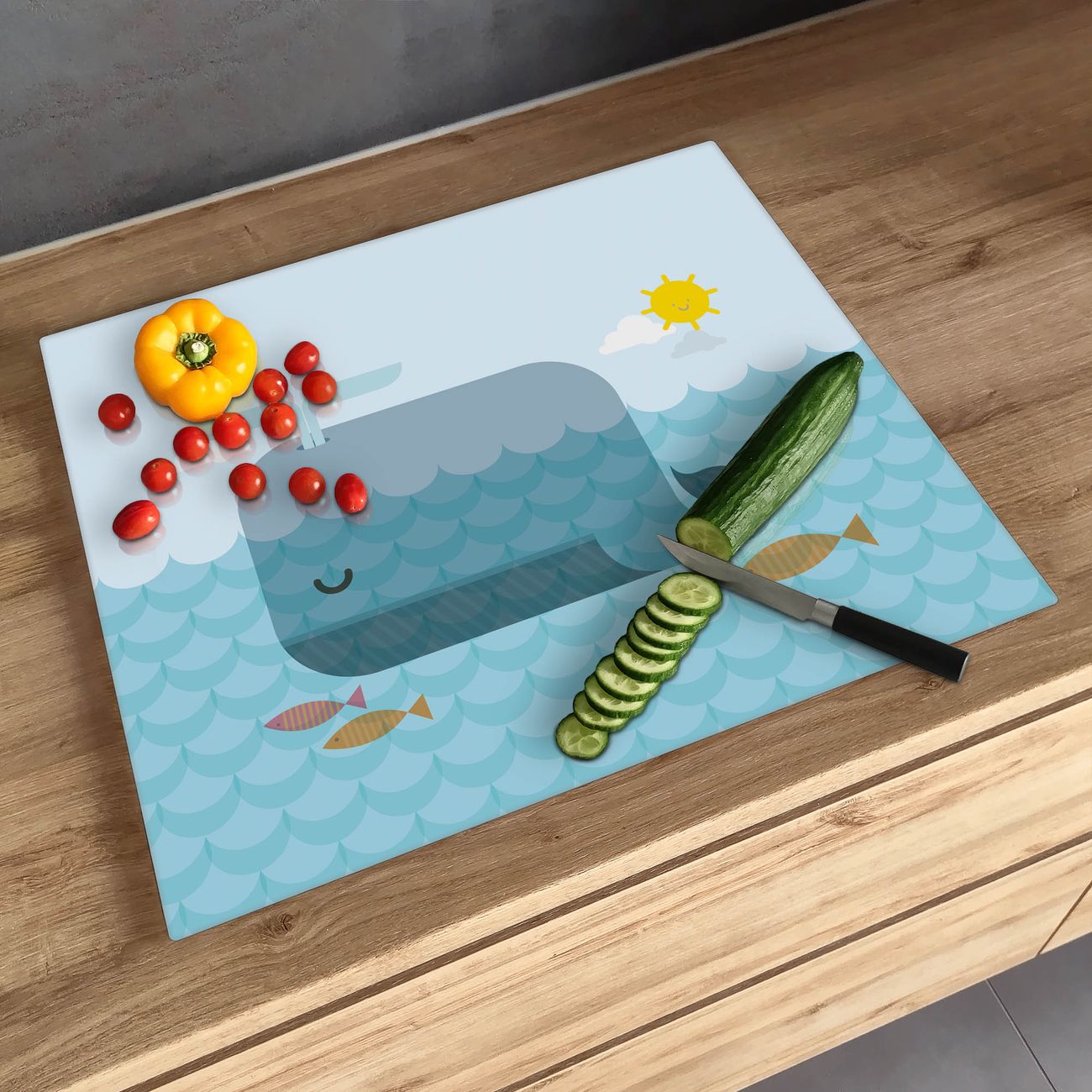 Schneidebrett 1 und 2 teilig Motiv Schlafender Wal