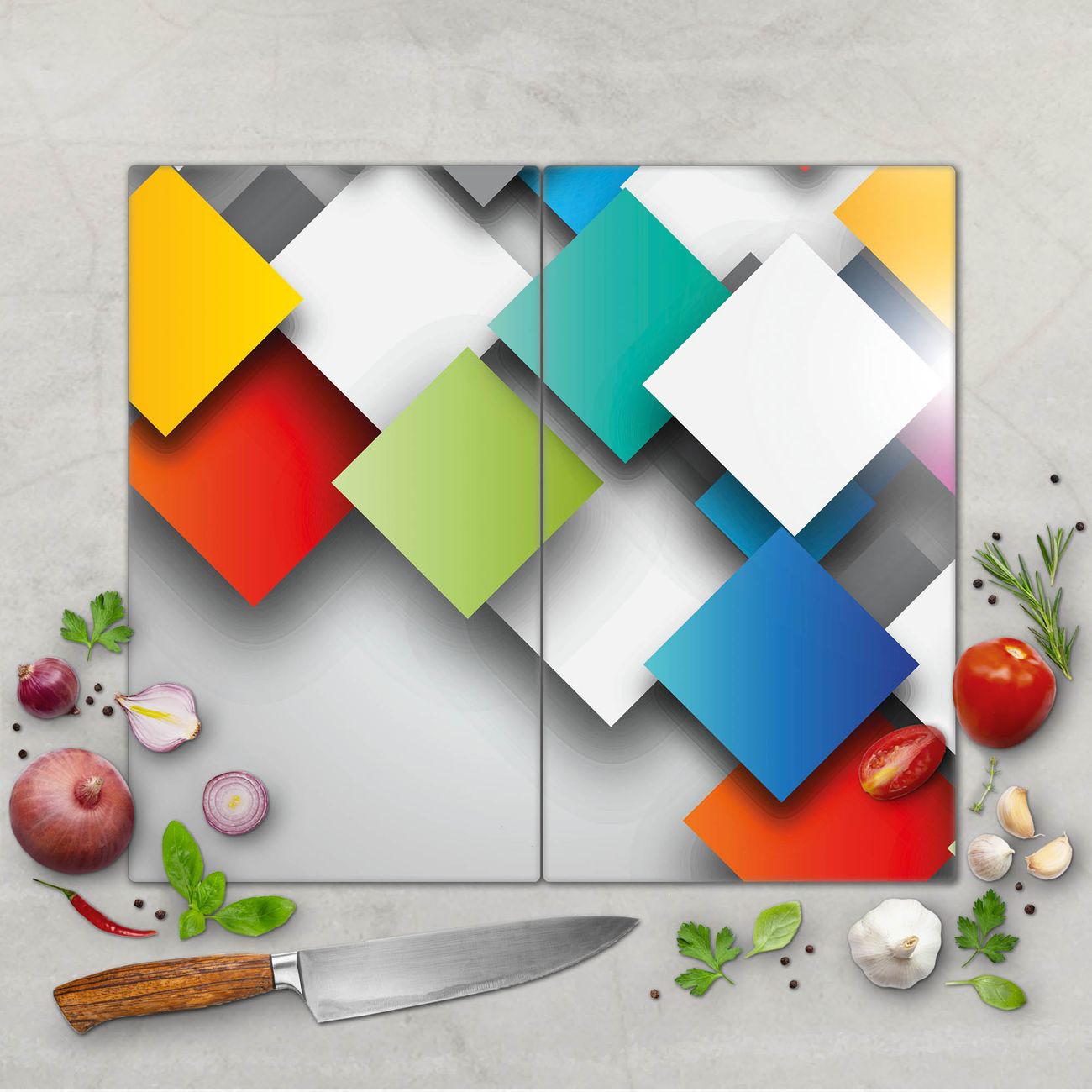 Schneidebrett 1 und 2 teilig Motiv Schwebende Quadrate