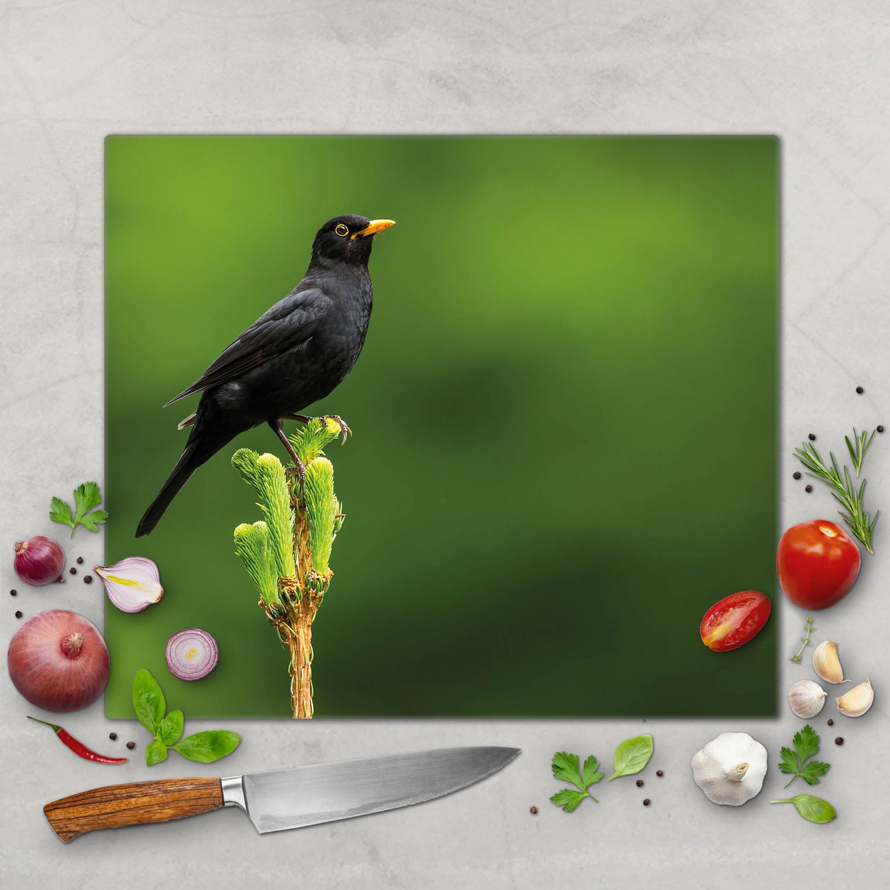 Schneidebrett 1 und 2 teilig Motiv Vogel auf Tannenzweig