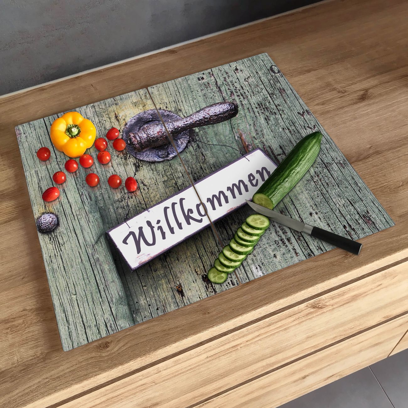Schneidebrett 1 und 2 teilig Motiv Willkommen
