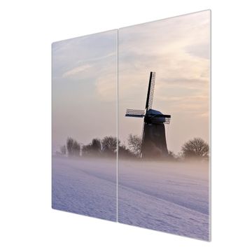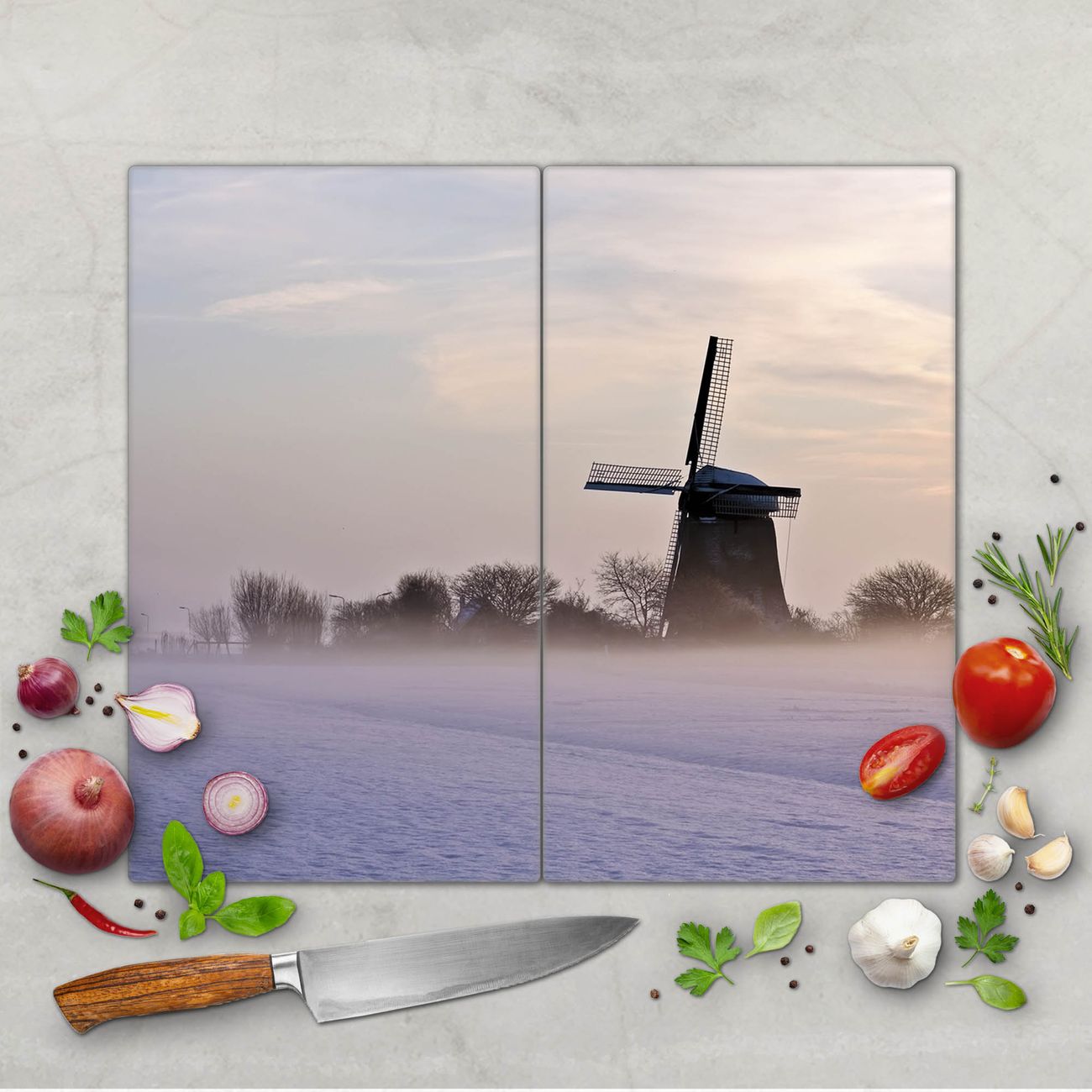 Schneidebrett 1 und 2 teilig Motiv Windmühle im Winter