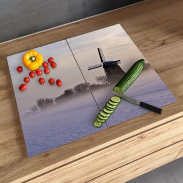 FUNKTION: Das banjado Schneidebrett mit Motiv Windmühle im Winter ist groß und rutschfest und damit ideal für Ihre Küche. Besonders praktisch. Das Schneidebrett ist vielseitig einsetzbar: ob als Spritzschutz hinter dem Herd für Ihre Küche oder als Glas Schneidebrett als hygienische und geruchsneutrale Unterlage. Sie können ebenfalls heiße Töpfe und Pfannen bis 100°C auf der Herdplattenabdeckung abstellen. Sie erhalten ein Multitalent für Ihre Küche. QUALITÄT: Die Schneideplatte Glas besteht aus hochwertigem, gehärtetem und hitzebeständigem Glas. Wählen Sie aus einem unserer zahlreichen Motive das passende Design für Ihre Küche aus. DETAILS: Das Schneidebrett Glas groß ist in verschiedenen Größen verfügbar. Sie erhalten separate Gumminoppen damit Ihr großes Schneidebrett rutschfest in der Küche steht. VIELSEITIG: Das Schneidebrett modern ist ein Allrounder - als Schneideunterlage Küche direkt auf dem Herd oder separat und als Spritzschutz an der Wand aufgestellt - ein praktisches Küchenutensil. BANJADO: Auf Wunsch fertigen wir das Glas Schneide Brett auch als Sondergröße an. Mehrteilige Platten sind auch möglich. Kontaktieren Sie uns gern für eine Spezialanfertigung Ihrer Glasplatte Küche.
