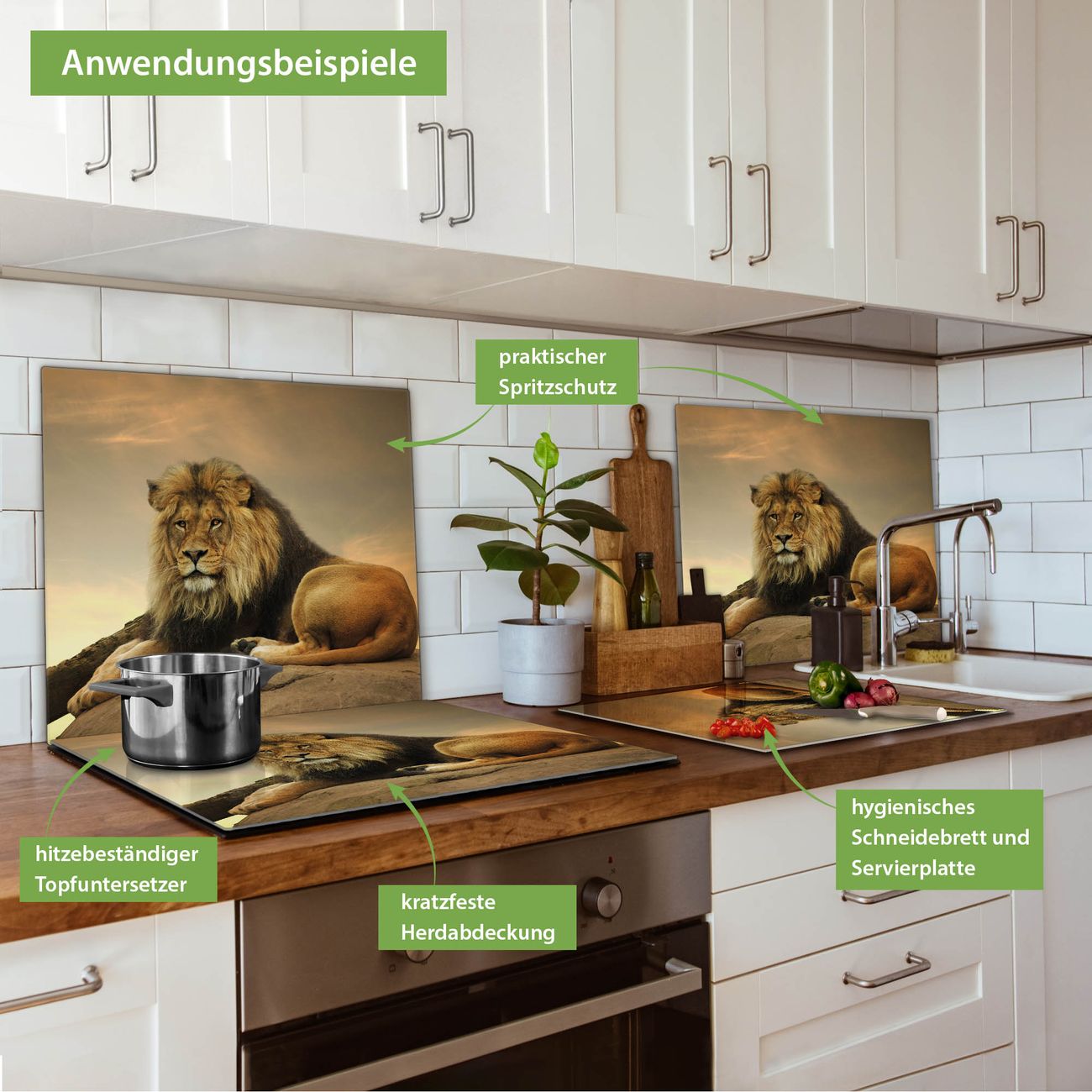 FUNKTION: Das banjado Schneidebrett mit Motiv Adrian ist groß und rutschfest und damit ideal für Ihre Küche. Besonders praktisch. Das Schneidebrett ist vielseitig einsetzbar: ob als Spritzschutz hinter dem Herd für Ihre Küche oder als Glas Schneidebrett als hygienische und geruchsneutrale Unterlage. Sie können ebenfalls heiße Töpfe und Pfannen bis 100°C auf der Herdplattenabdeckung abstellen. Sie erhalten ein Multitalent für Ihre Küche. QUALITÄT: Die Schneideplatte Glas besteht aus hochwertigem, gehärtetem und hitzebeständigem Glas. Wählen Sie aus einem unserer zahlreichen Motive das passende Design für Ihre Küche aus. DETAILS: Das Schneidebrett Glas groß ist in verschiedenen Größen verfügbar. Sie erhalten separate Gumminoppen damit Ihr großes Schneidebrett rutschfest in der Küche steht. VIELSEITIG: Das Schneidebrett modern ist ein Allrounder - als Schneideunterlage Küche direkt auf dem Herd oder separat und als Spritzschutz an der Wand aufgestellt - ein praktisches Küchenutensil. BANJADO: Auf Wunsch fertigen wir das Glas Schneide Brett auch als Sondergröße an. Mehrteilige Platten sind auch möglich. Kontaktieren Sie uns gern für eine Spezialanfertigung Ihrer Glasplatte Küche.