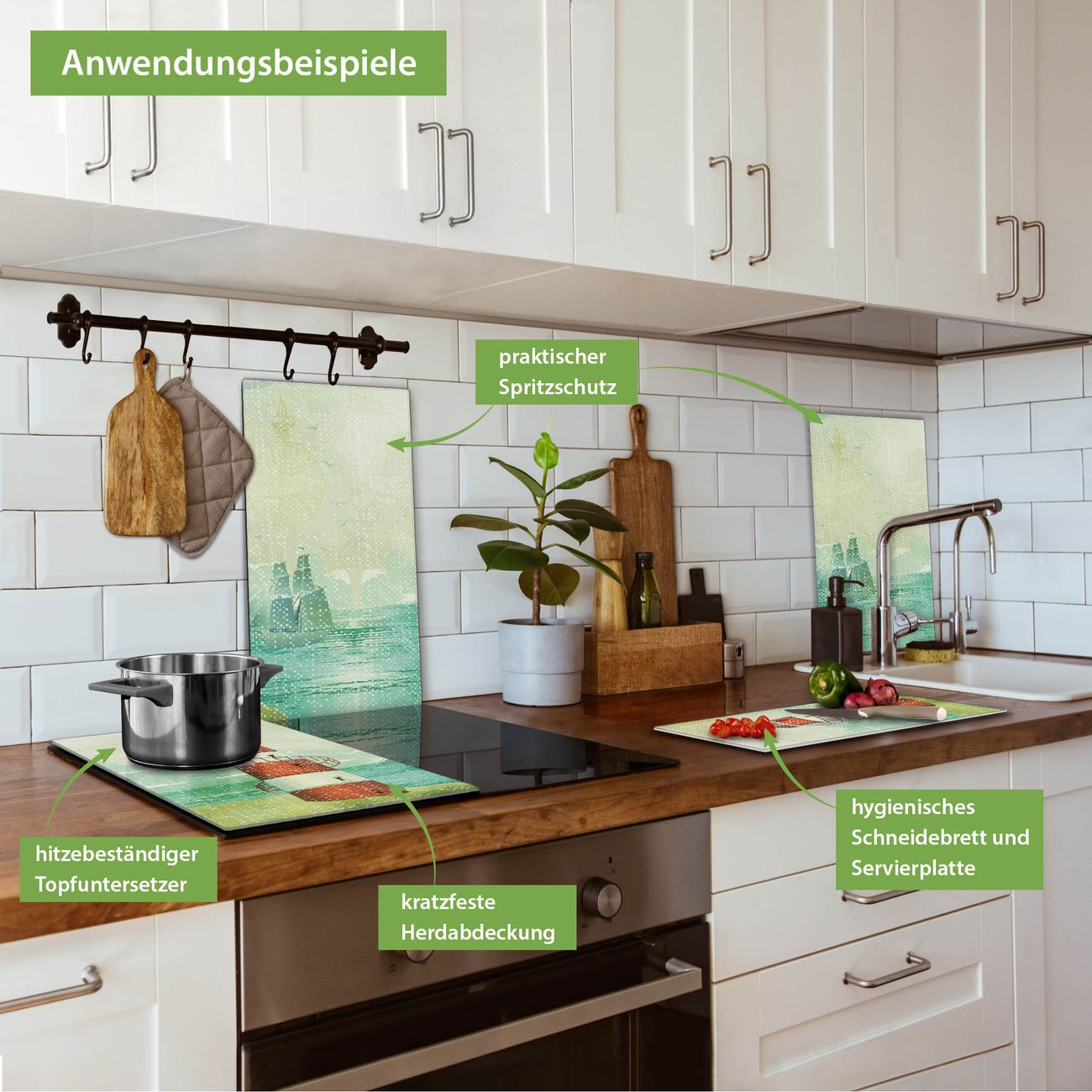FUNKTION: Das banjado Schneidebrett mit Motiv Alter Leuchtturm ist groß und rutschfest und damit ideal für Ihre Küche. Besonders praktisch. Das Schneidebrett ist vielseitig einsetzbar: ob als Spritzschutz hinter dem Herd für Ihre Küche oder als Glas Schneidebrett als hygienische und geruchsneutrale Unterlage. Sie können ebenfalls heiße Töpfe und Pfannen bis 100°C auf der Herdplattenabdeckung abstellen. Sie erhalten ein Multitalent für Ihre Küche. QUALITÄT: Die Schneideplatte Glas besteht aus hochwertigem, gehärtetem und hitzebeständigem Glas. Wählen Sie aus einem unserer zahlreichen Motive das passende Design für Ihre Küche aus. DETAILS: Das Schneidebrett Glas groß ist in verschiedenen Größen verfügbar. Sie erhalten separate Gumminoppen damit Ihr großes Schneidebrett rutschfest in der Küche steht. VIELSEITIG: Das Schneidebrett modern ist ein Allrounder - als Schneideunterlage Küche direkt auf dem Herd oder separat und als Spritzschutz an der Wand aufgestellt - ein praktisches Küchenutensil. BANJADO: Auf Wunsch fertigen wir das Glas Schneide Brett auch als Sondergröße an. Mehrteilige Platten sind auch möglich. Kontaktieren Sie uns gern für eine Spezialanfertigung Ihrer Glasplatte Küche.